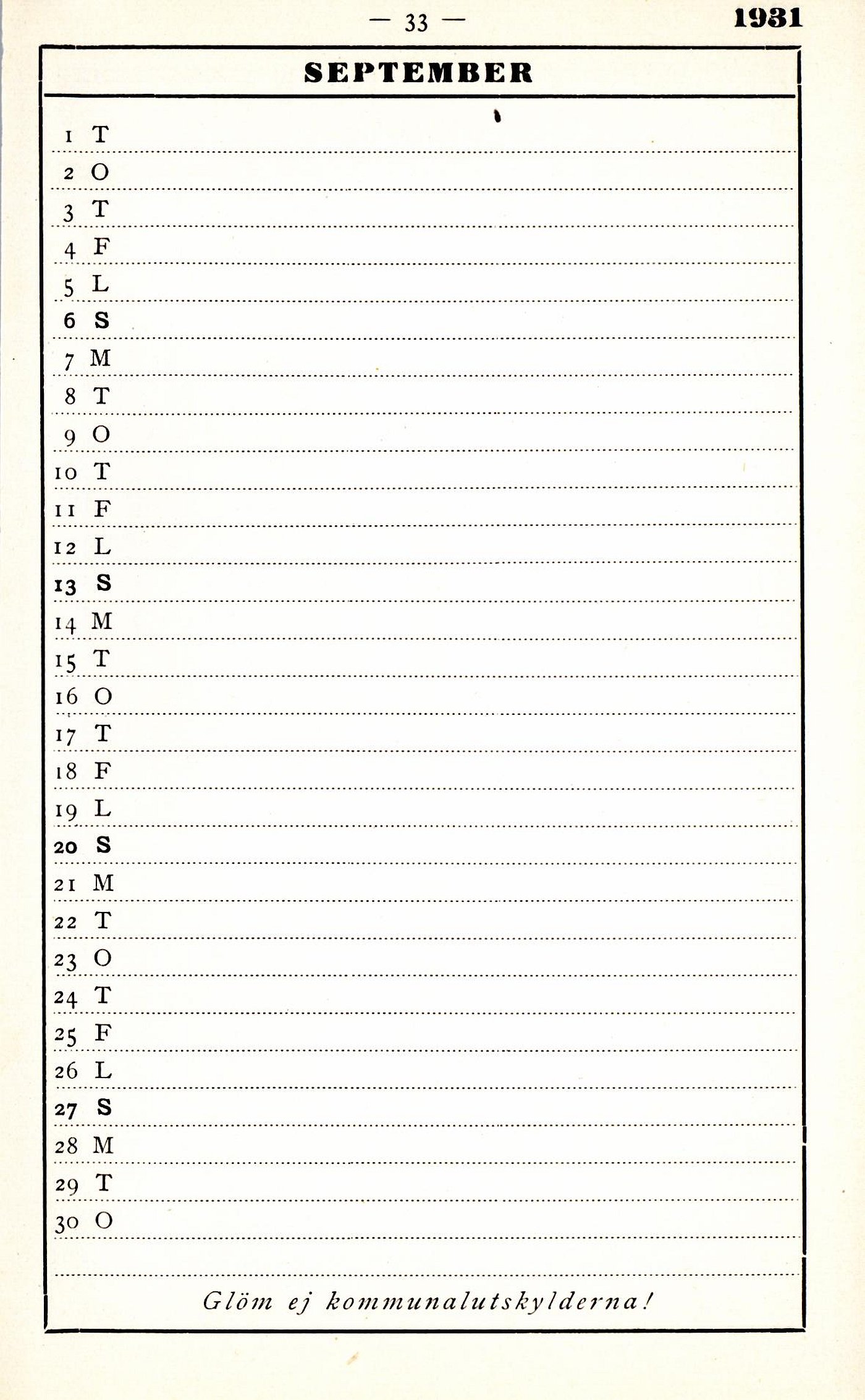 Full resolution (JPEG) - On this page / på denna sida - Almanack för 1931 - September