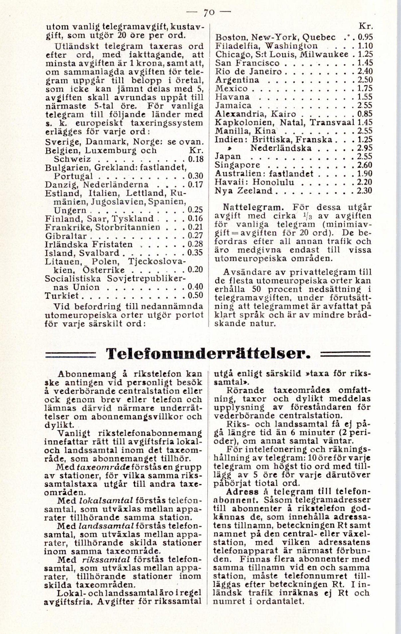telefonabonnent. Såsom telegramadresser