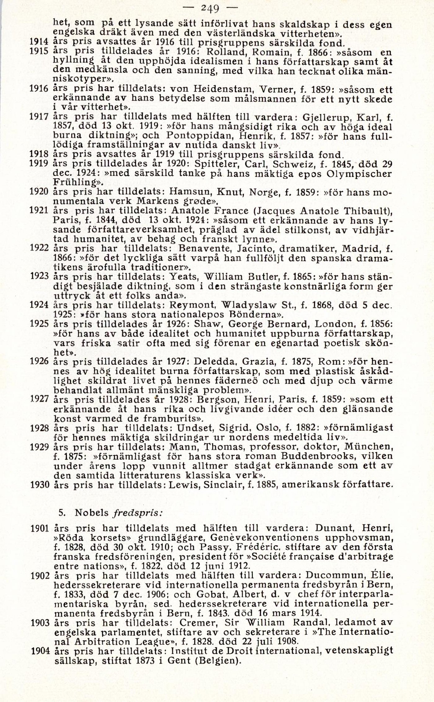 1924 års pris har tilldelats: Reymont, Wladyslaw St., f. 1868, död 5 dec.