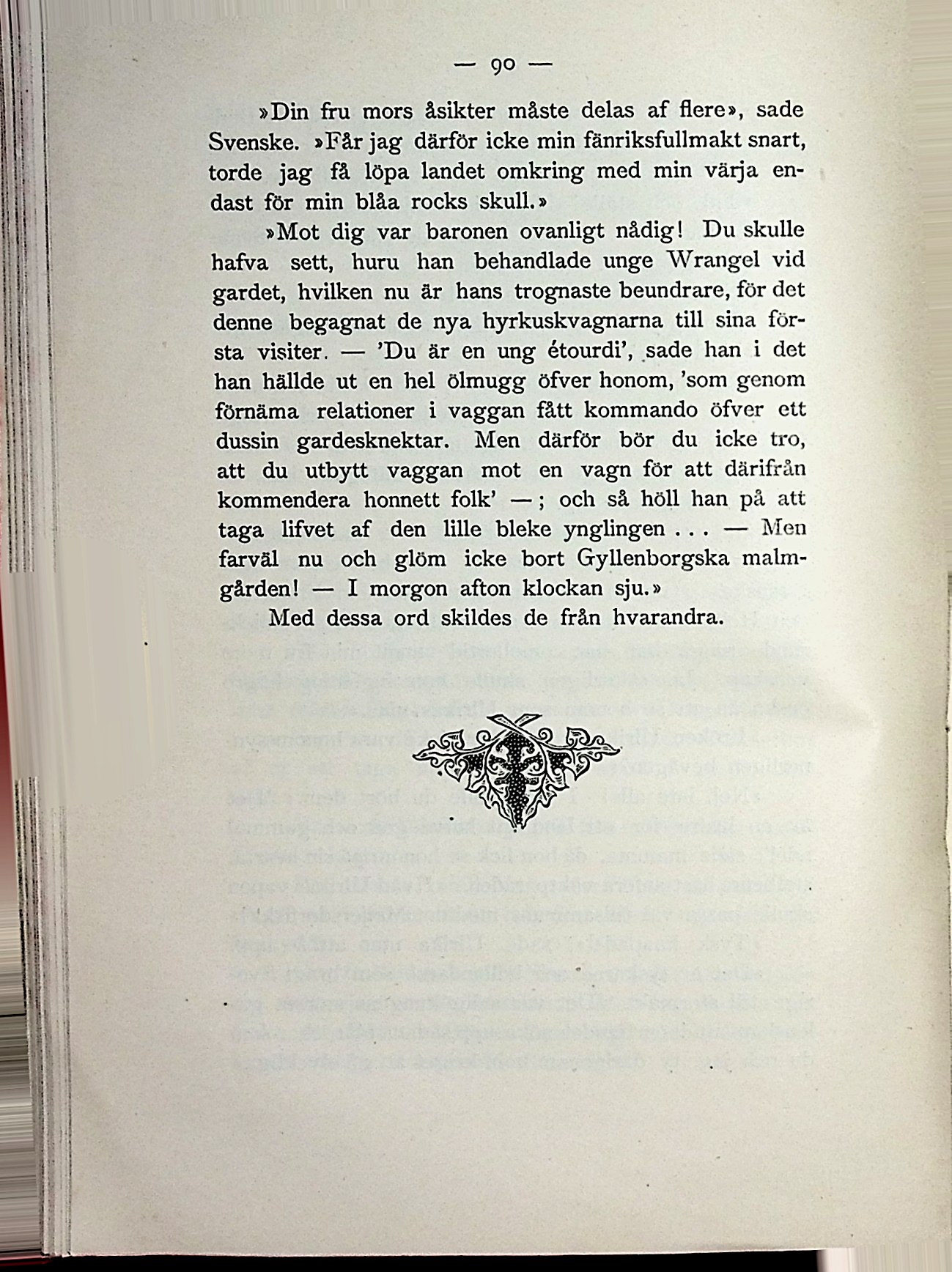 Svenske. »Får jag därför icke min fänriksfullmakt snart,