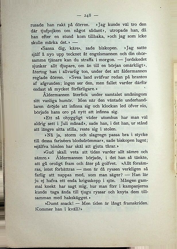 »Sansa dig, käre», sade biskopen. »Jag satte
