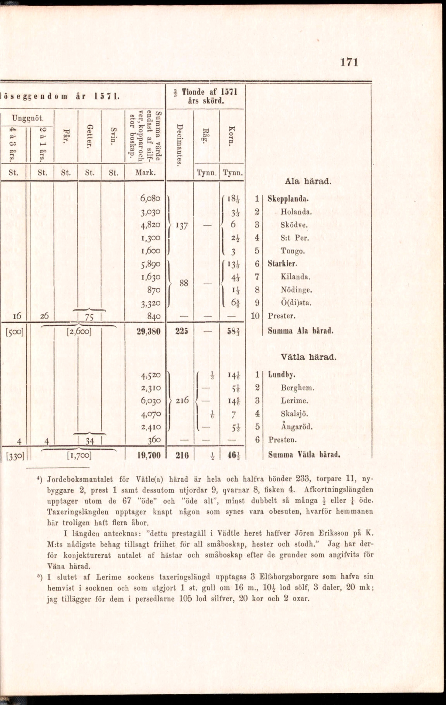 4) Jordeboksmantalet för Vätle(a) härad är hela och halfva bönder 233, torpare 11, ny¬