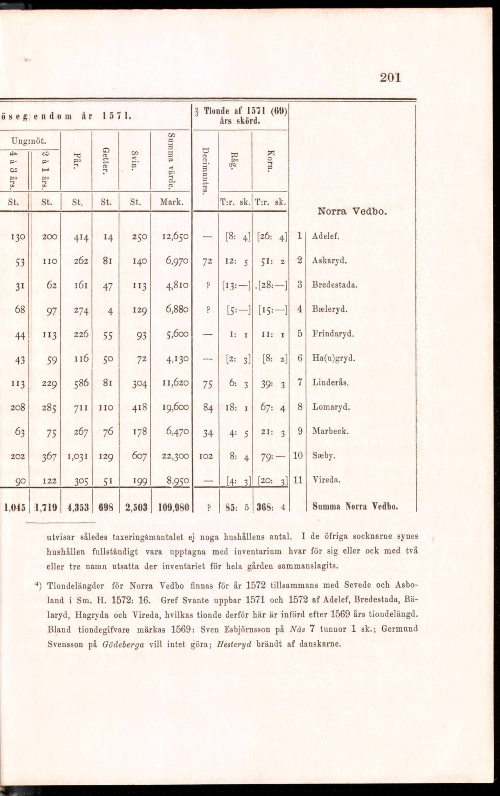 4) Tiondelängder för Norra Vedbo finnas för år 1572 tillsammans med Sevede och Asbo-
