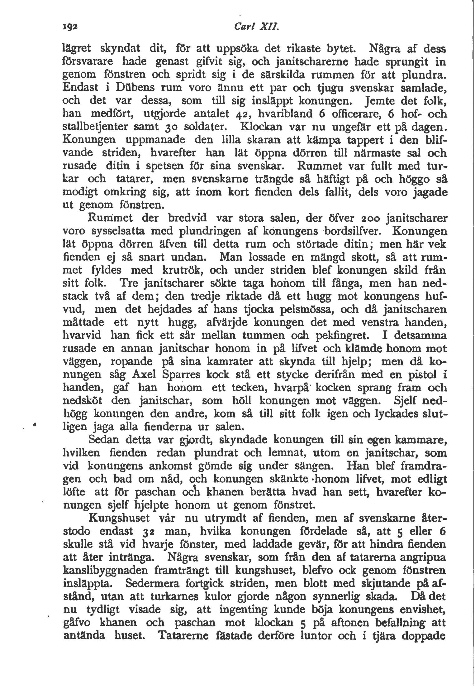 nedsköt den janitschar, som höll konungen mot väggen. Sjelf