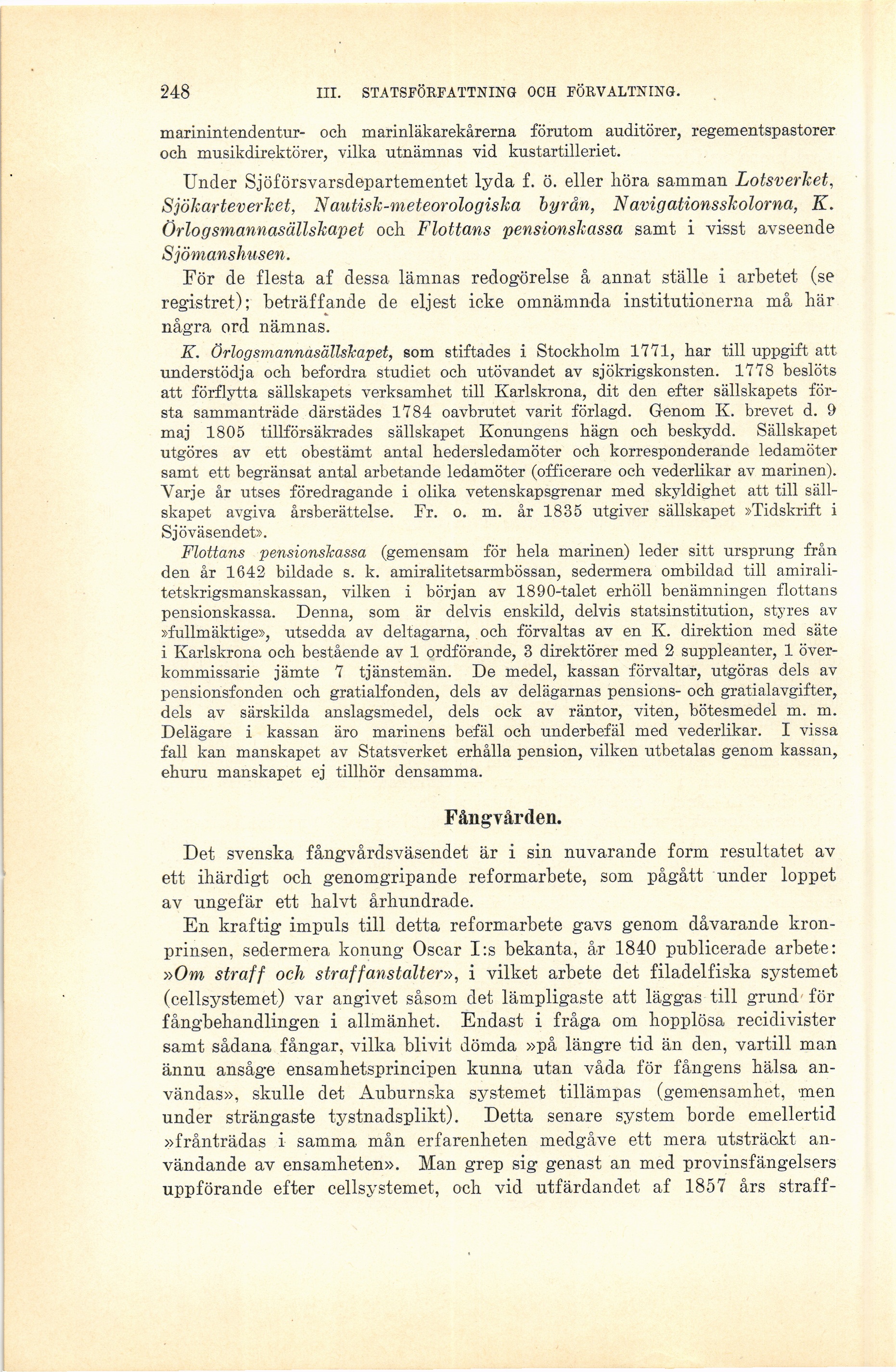 Full resolution (JPEG) - On this page / på denna sida - III. Statsförfattning och förvaltning - 2. Statsförvaltningen. Av E. Söderberg - Sjöförsvaret. Av H. Wrangel - Fångvården. Av V. Almquist