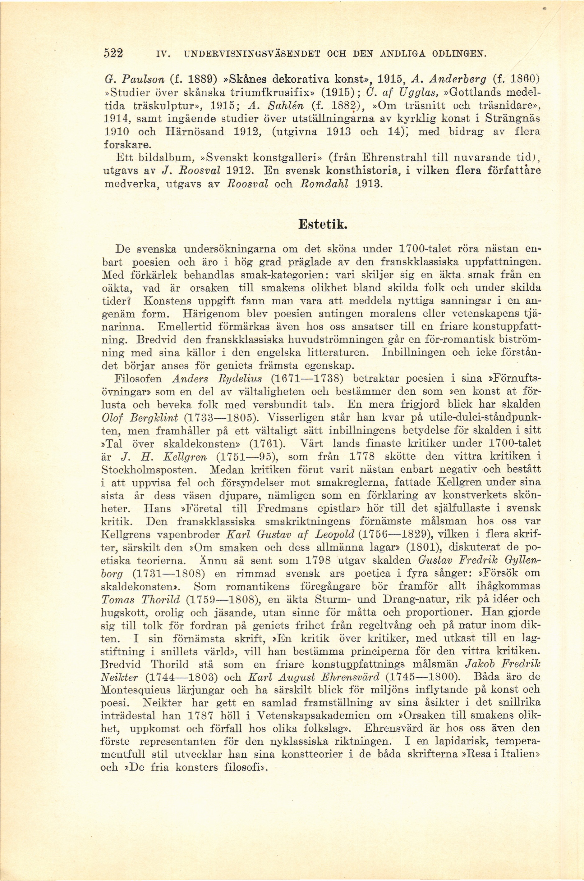 Full resolution (JPEG) - On this page / på denna sida - IV. Undervisningsväsendet och den andliga odlingen. Inl. av P. E. Lindström - 11. Den vetenskapliga forskningen - Konsthistoria. Av G. Nordensvan - Estetik. Av J. A. Nilsson