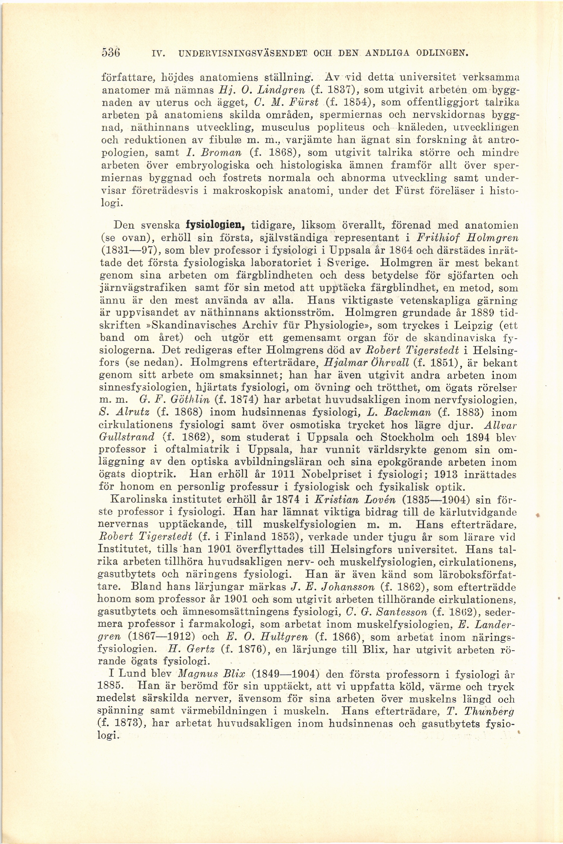m. m. Gr. F. Göthlin (f. 1874) har arbetat huvudsakligen inom nervfysiologien,
