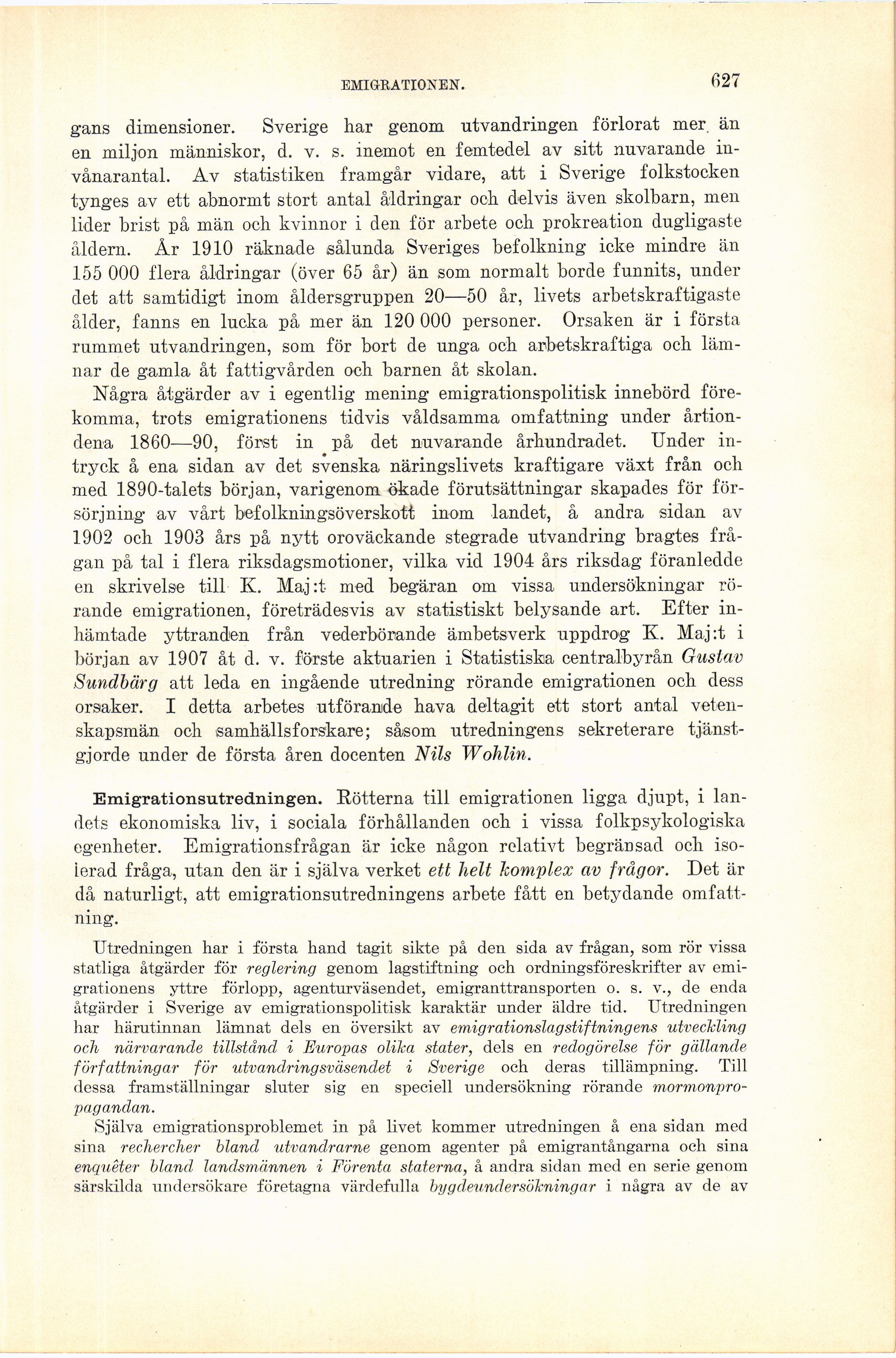 rörande emigrationen, företrädesvis av statistiskt belysande art. Efter