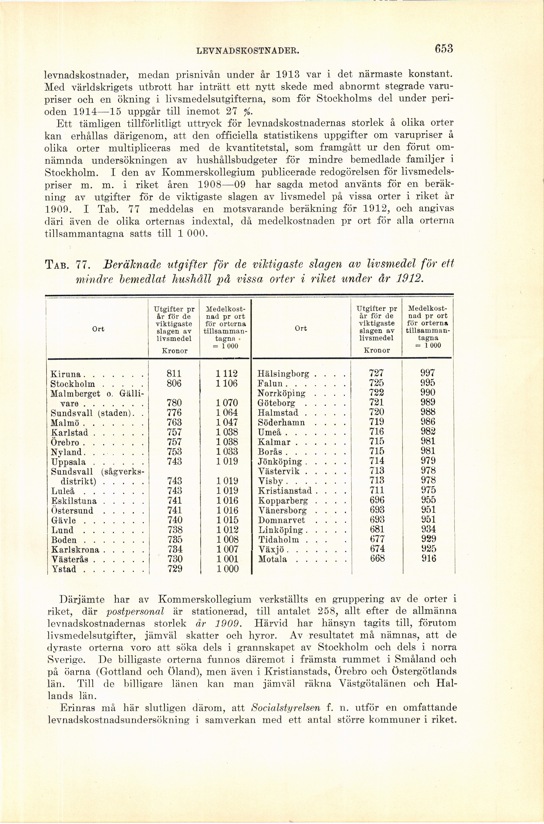 1909. I Tab. 77 meddelas en motsvarande beräkning för 1912, och angivas