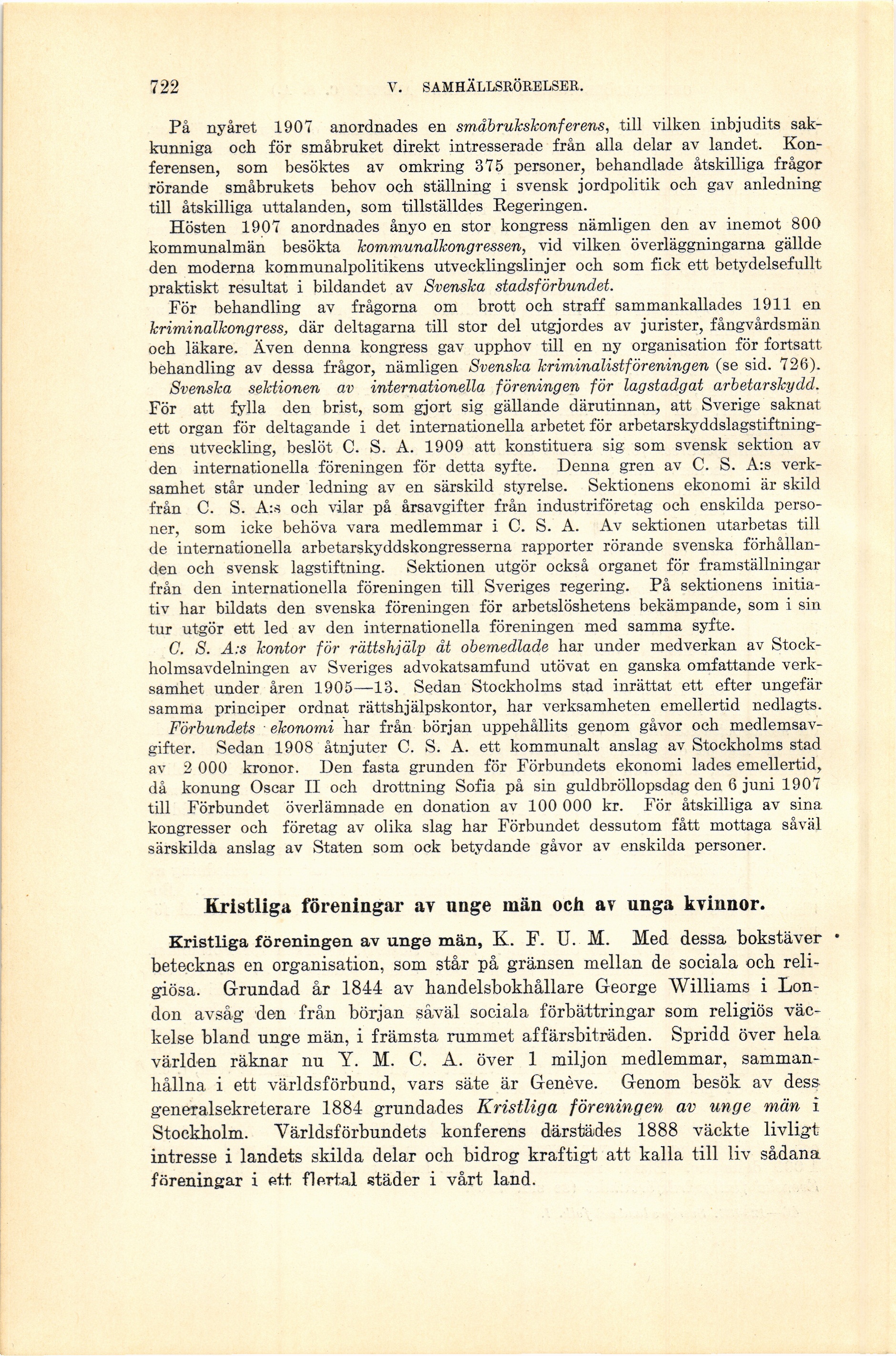 Full resolution (JPEG) - On this page / på denna sida - V. Samhällsrörelser - 4. Övriga samhällsrörelser - Centralförbundet för socialt arbete. Av G. H. von Koch - Kristliga föreningar av unge män och av unga kvinnor. Av Karl Fries och Hildur Mellin
