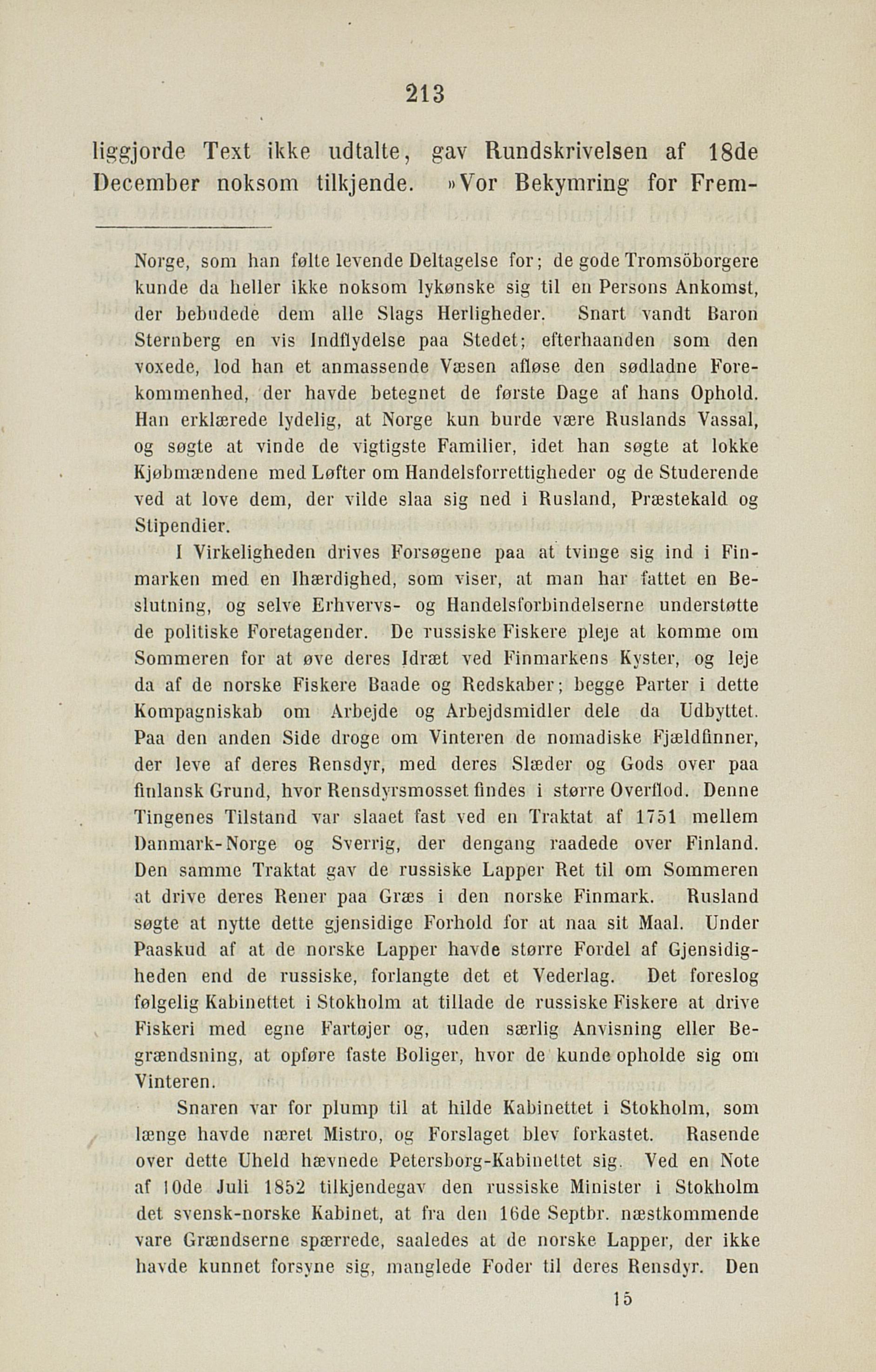 Full resolution (JPEG) - On this page / på denna sida - VI. Kong Carl Johan og Kong Oscar ligeoverfor det russiske Kabinet - 2 - Dens formodede Indflydelse paa Fredslutningen, dens sande Betydning; Ruslands Fremfærd i Finmarken