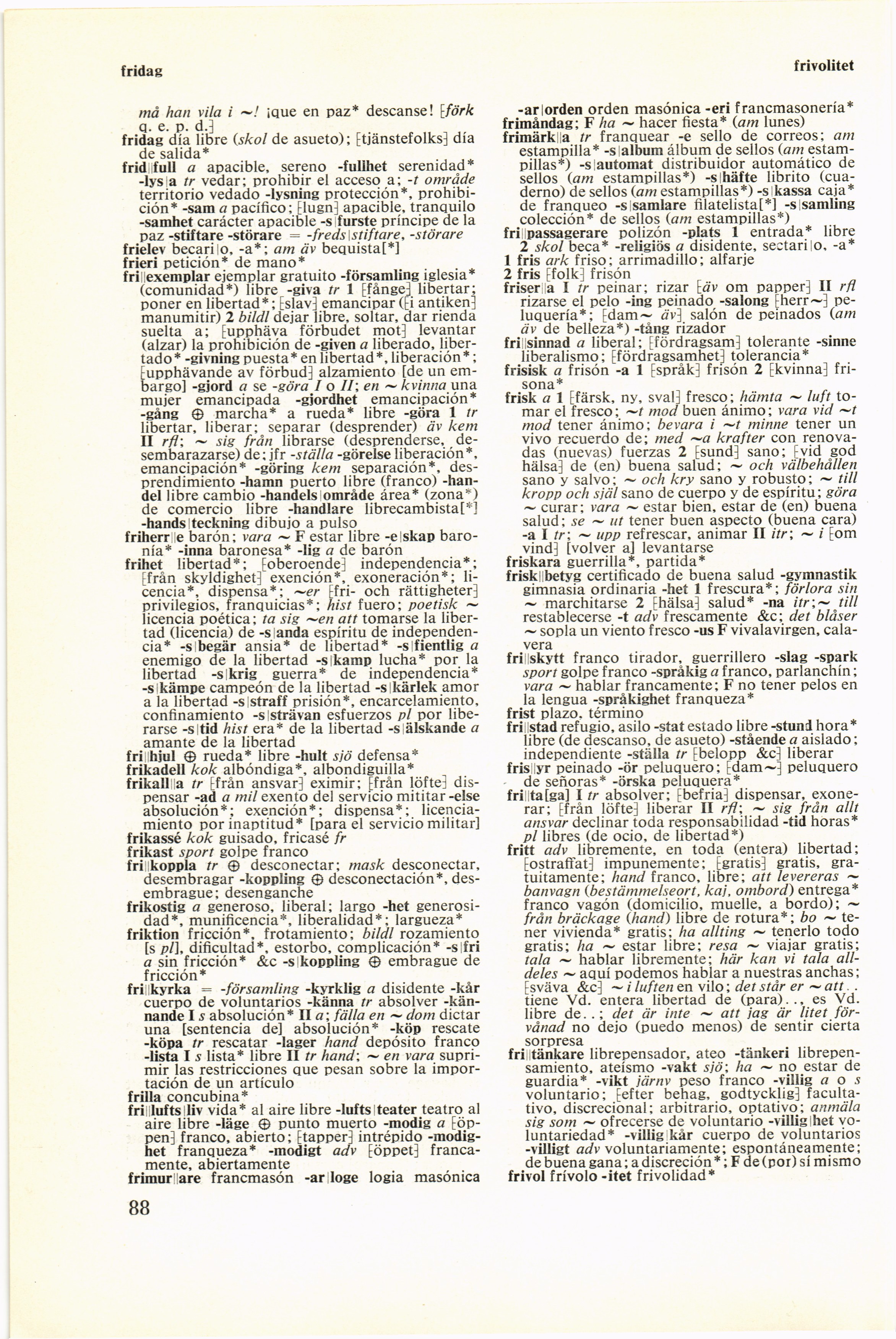 fri; stad refugio, asilo -stat estado libre -stund hora*