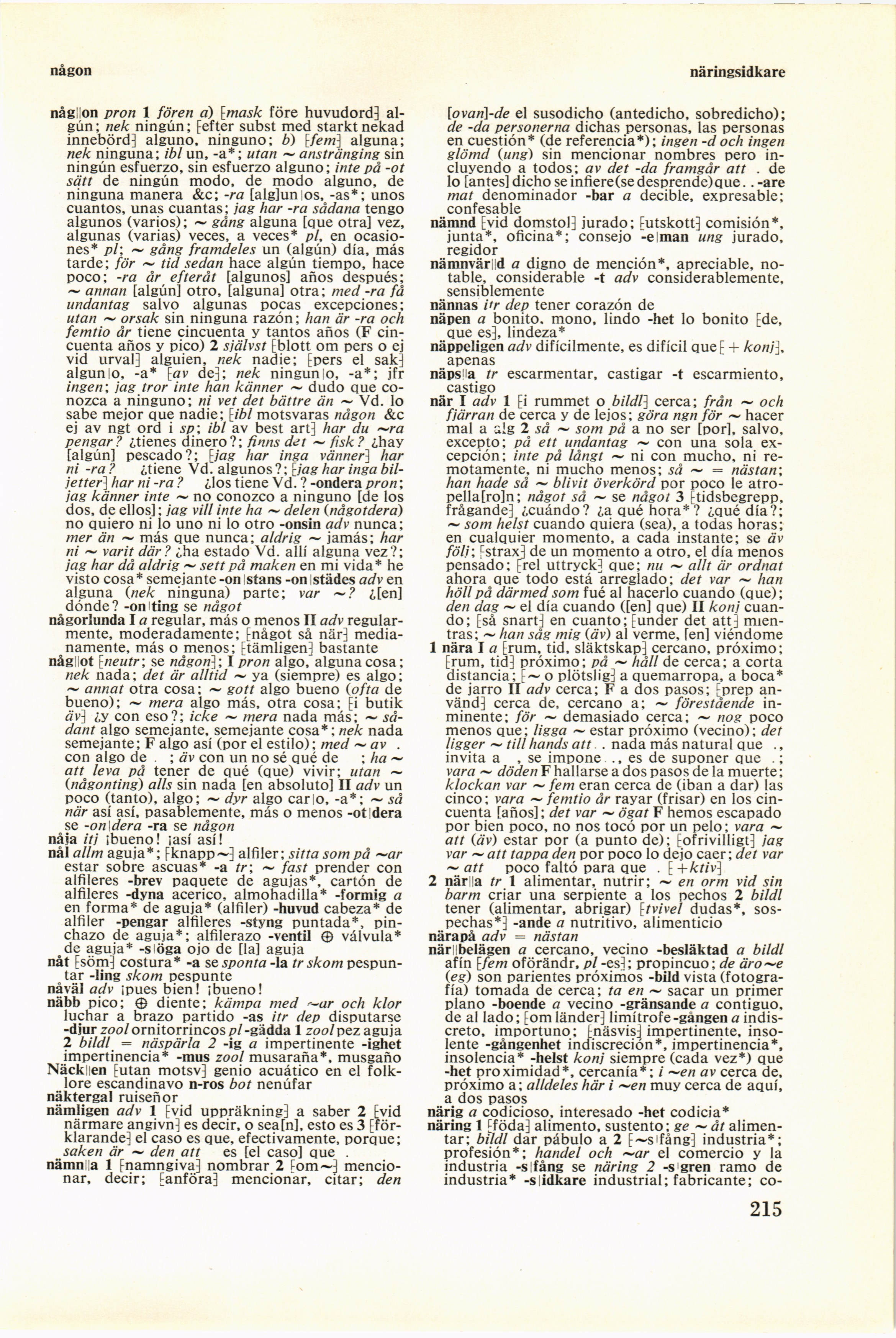 innebörd] alguno, ninguno; b) [fem] alguna;