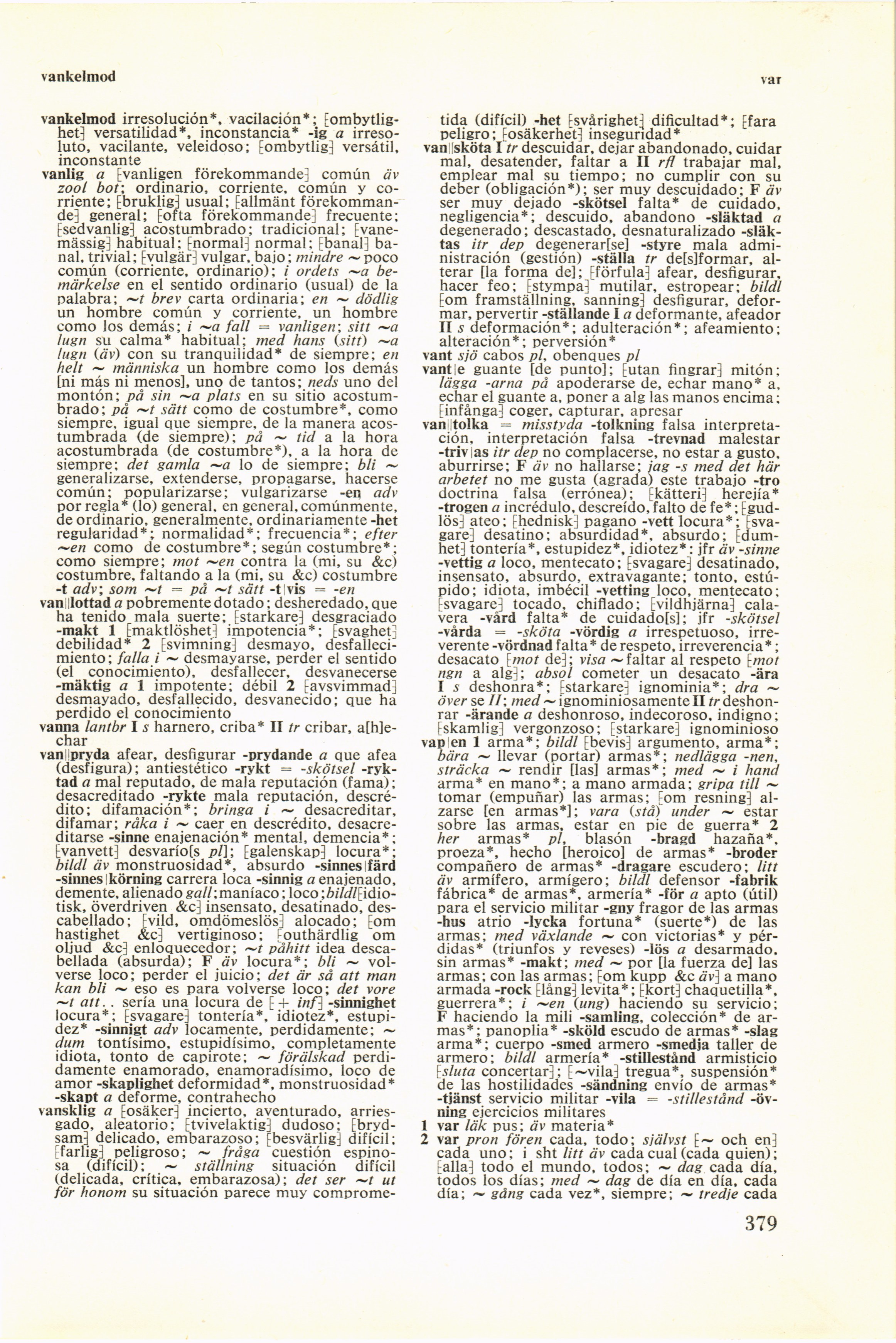 van |sköta I tr descuidar, dejar abandonado, cuidar