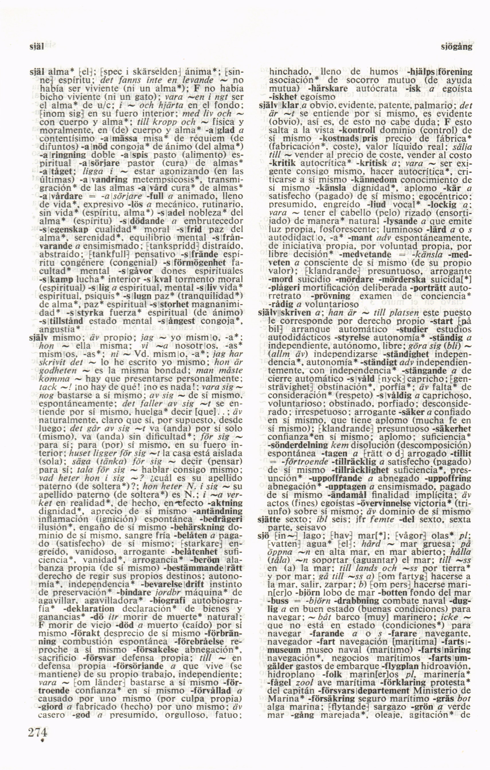 (sola); säga (tänka) för sig ~ decir (pensar)