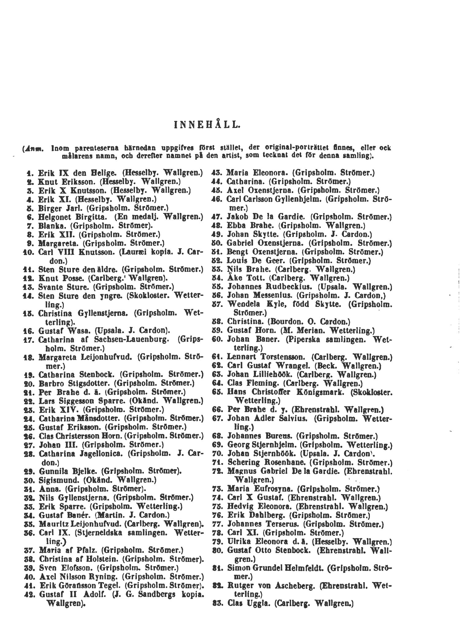 (Anm. Inom parenteserna härnedan uppgifves först stället, der original-porträttet finnes, eller ock