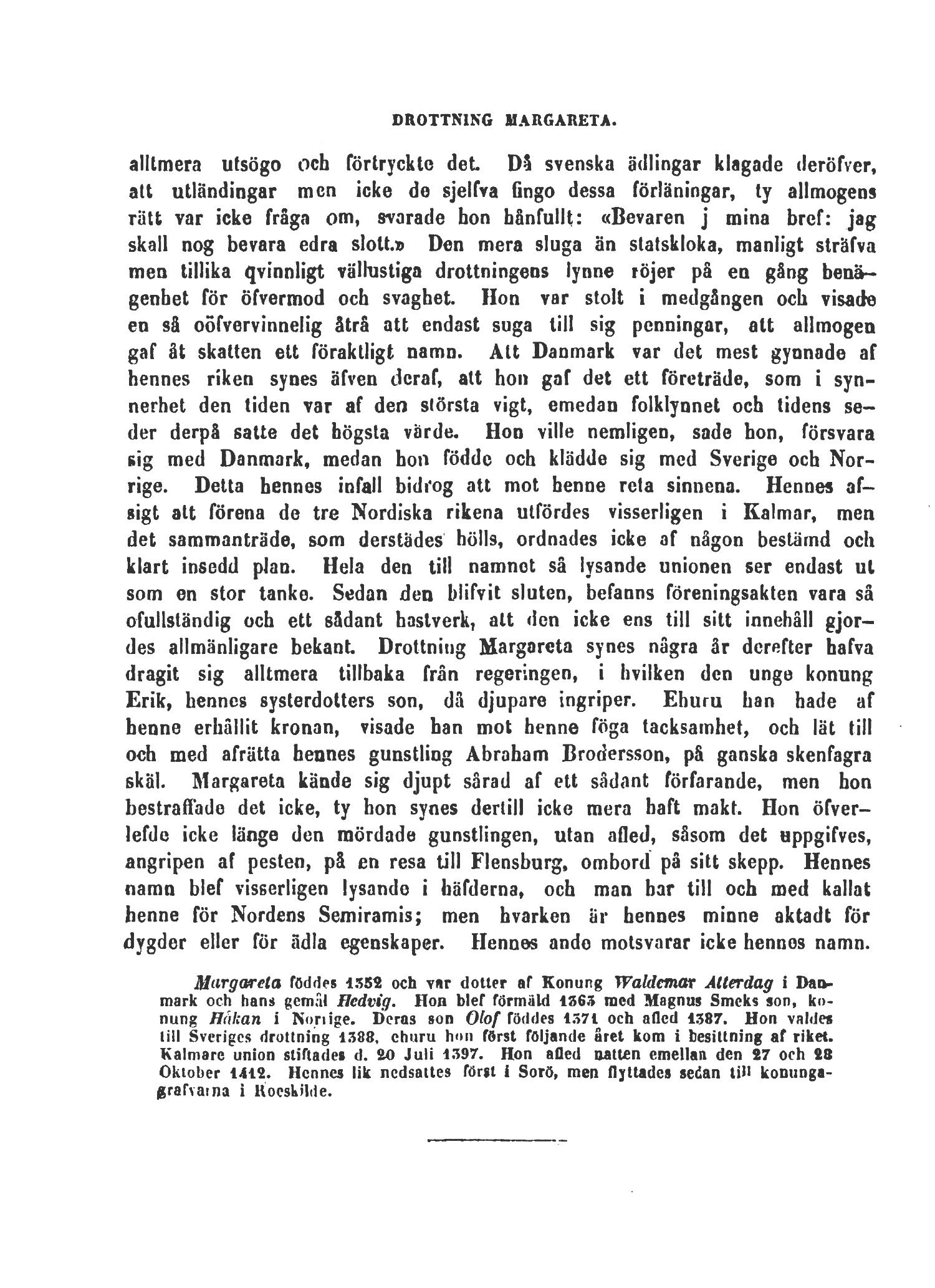 gjordes allmänligare bekant Drottning Margareta synes några år derefter hafva