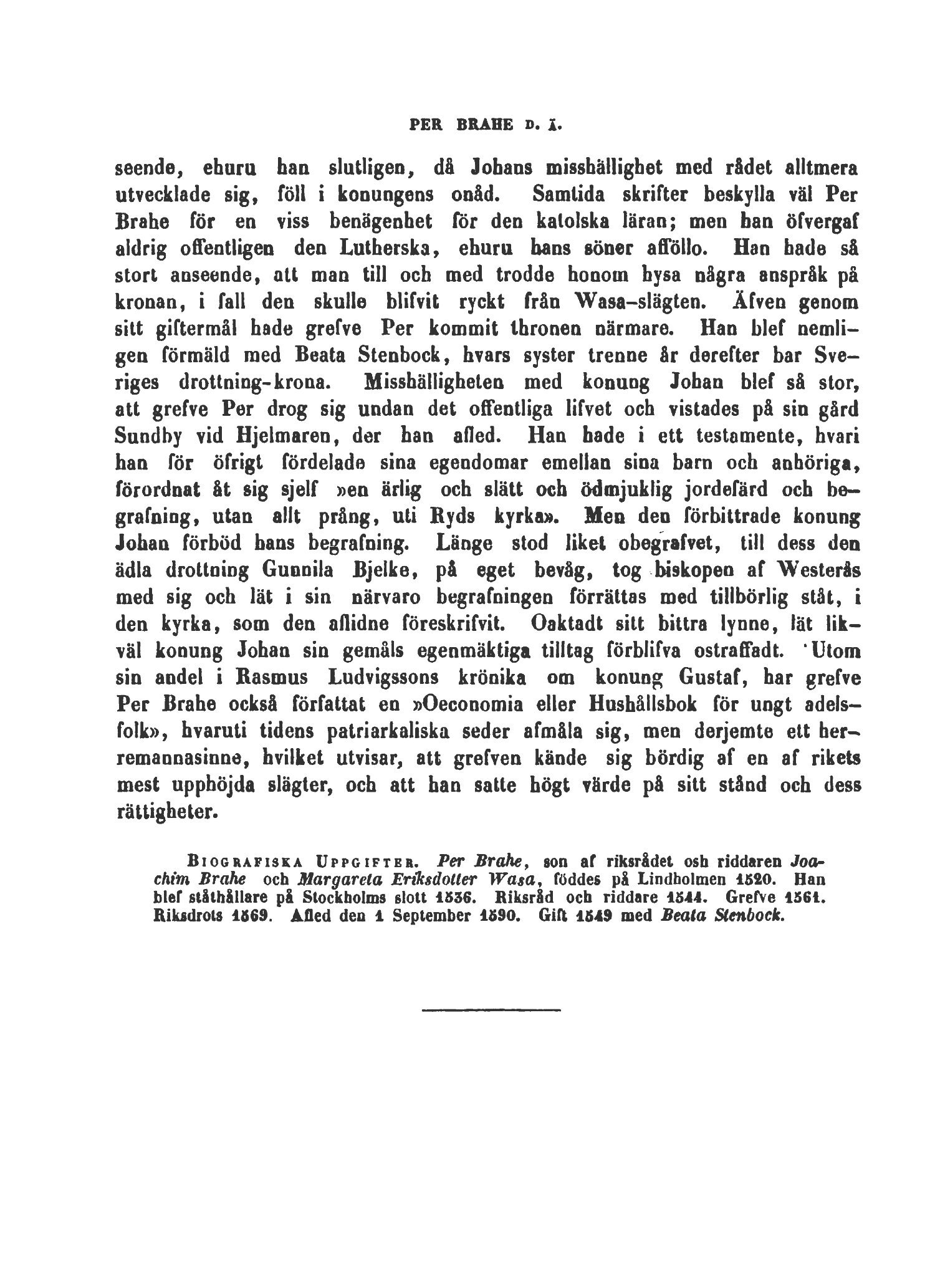 Biografiska Uppgifter. Per Brahe, son af riksrådet osb riddaren