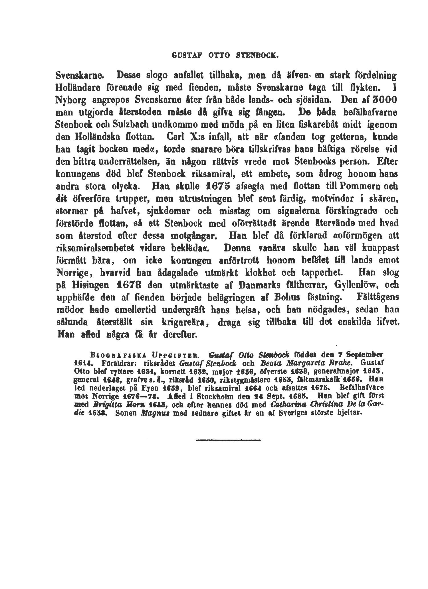 mot Norrige 1676—7*. Afled i Stockholm den «4 Sept. 1683. Han blef gift först
