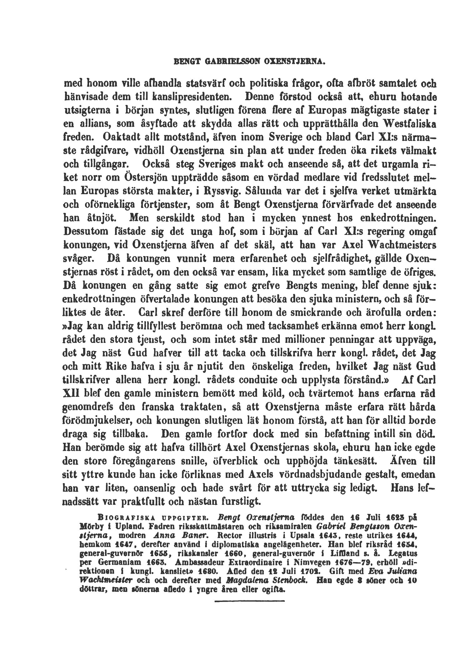 och oförnekliga förtjenster, som åt Bengt Oxenstjerna förvärfvade det anseende
