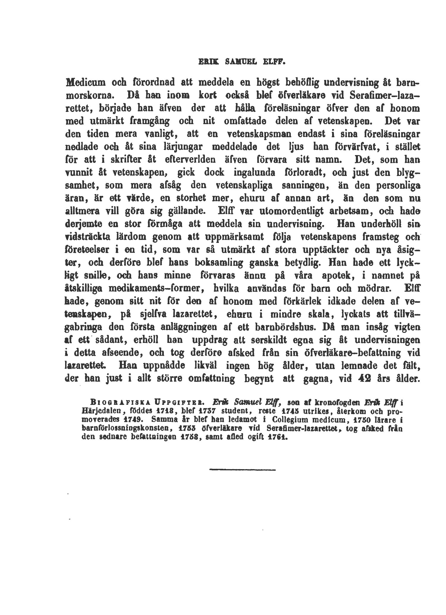 Bioobåfiska Uppgifter. Erik Samuel Elff, sea af kronofogden Erik Etff i