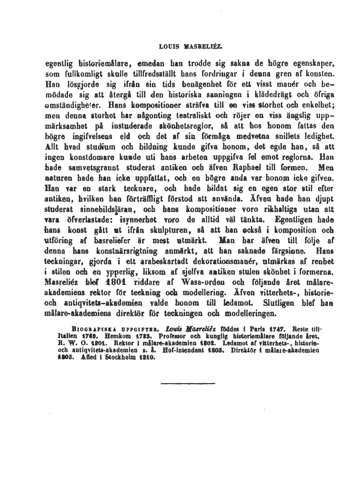 Biografiska uppgifter. Louis MasreUéz föddes t Paris 1747. Best«