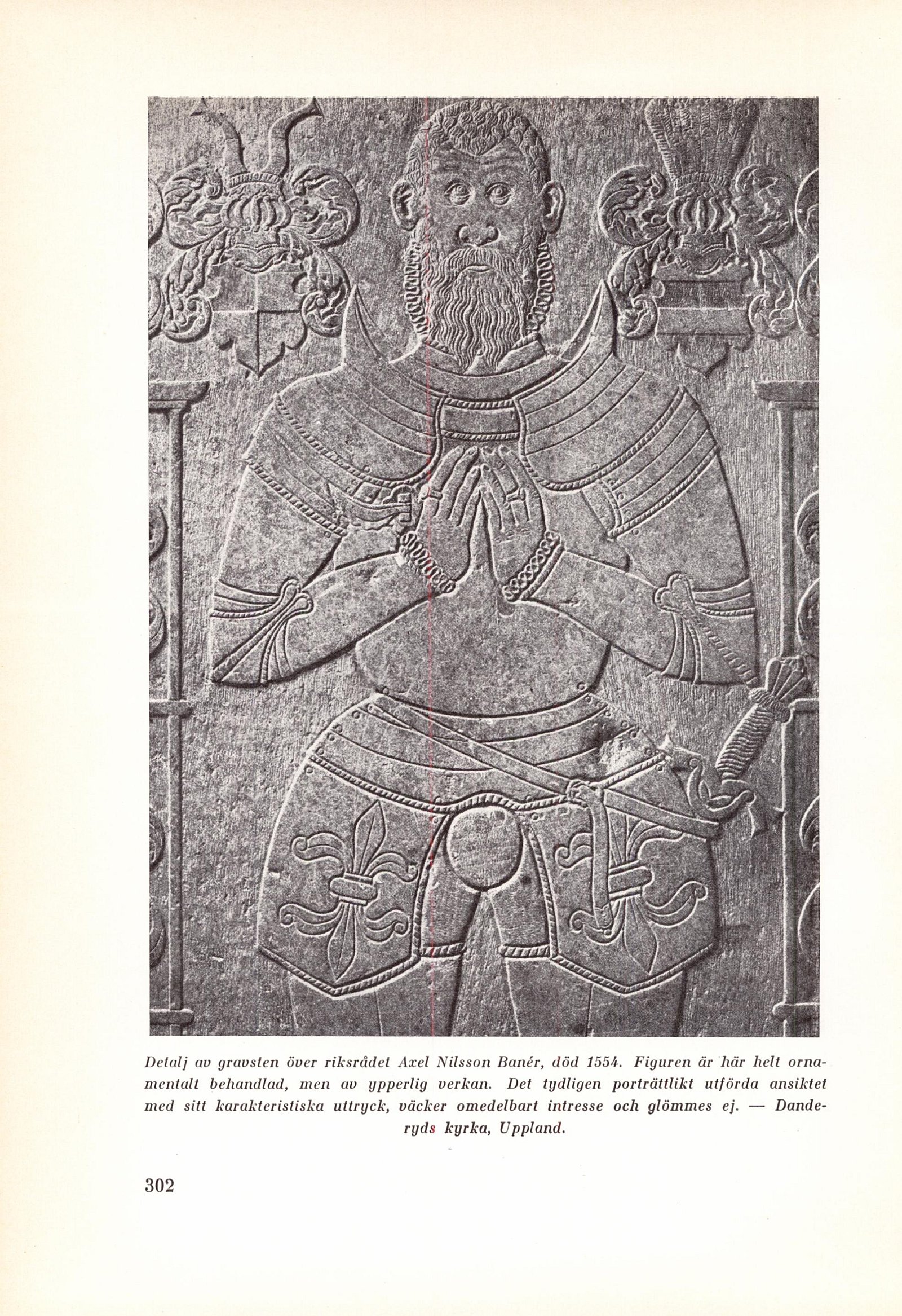 Detalj av gravsten över riksrådet Axel Nilsson Baner, död 1554. Figuren är här helt