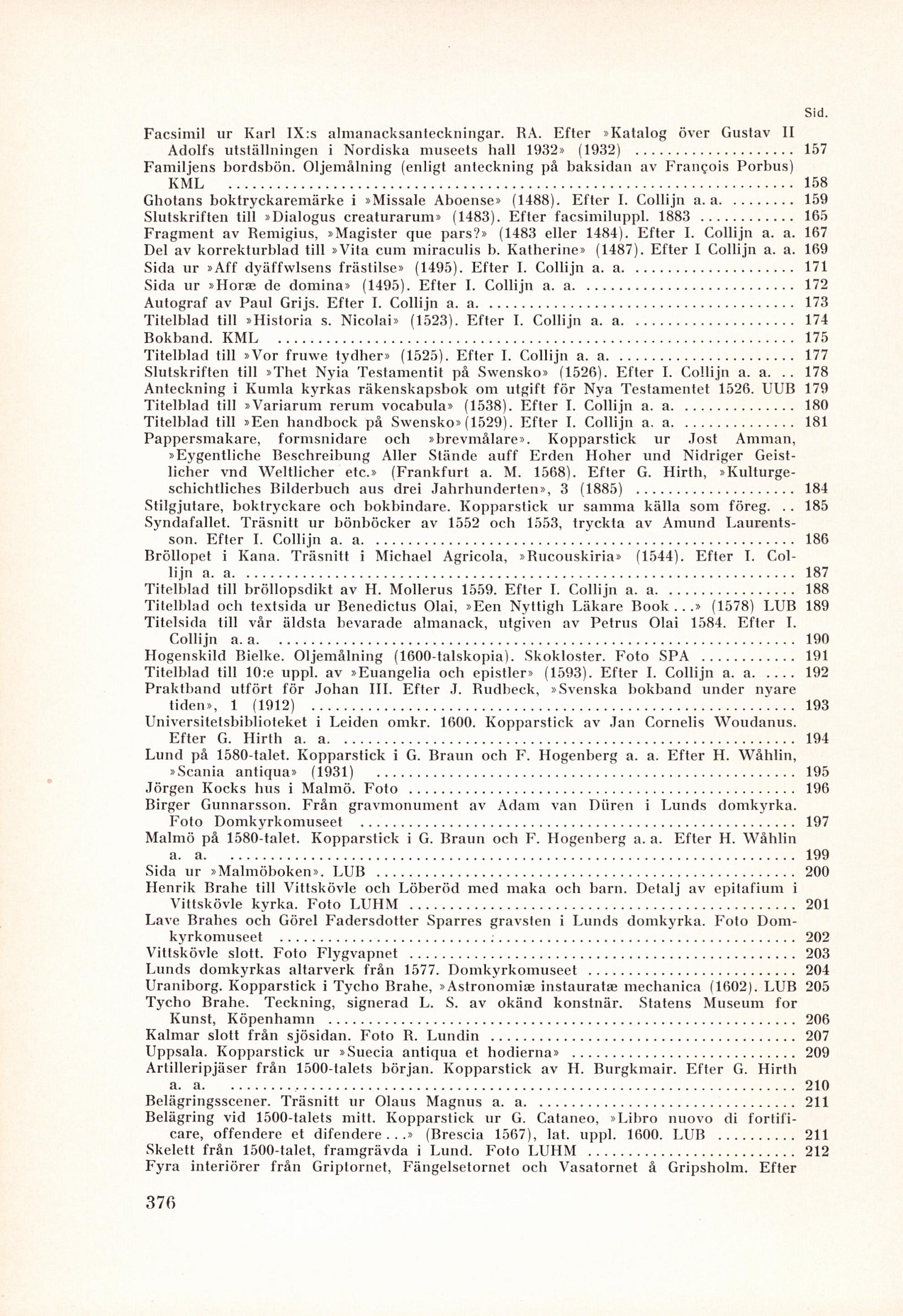 Full resolution (JPEG) - On this page / på denna sida - Förteckning över textillustrationerna jämte uppgifter om var de avbildade föremålen och konstverken befinna sig och varifrån bilderna erhållits