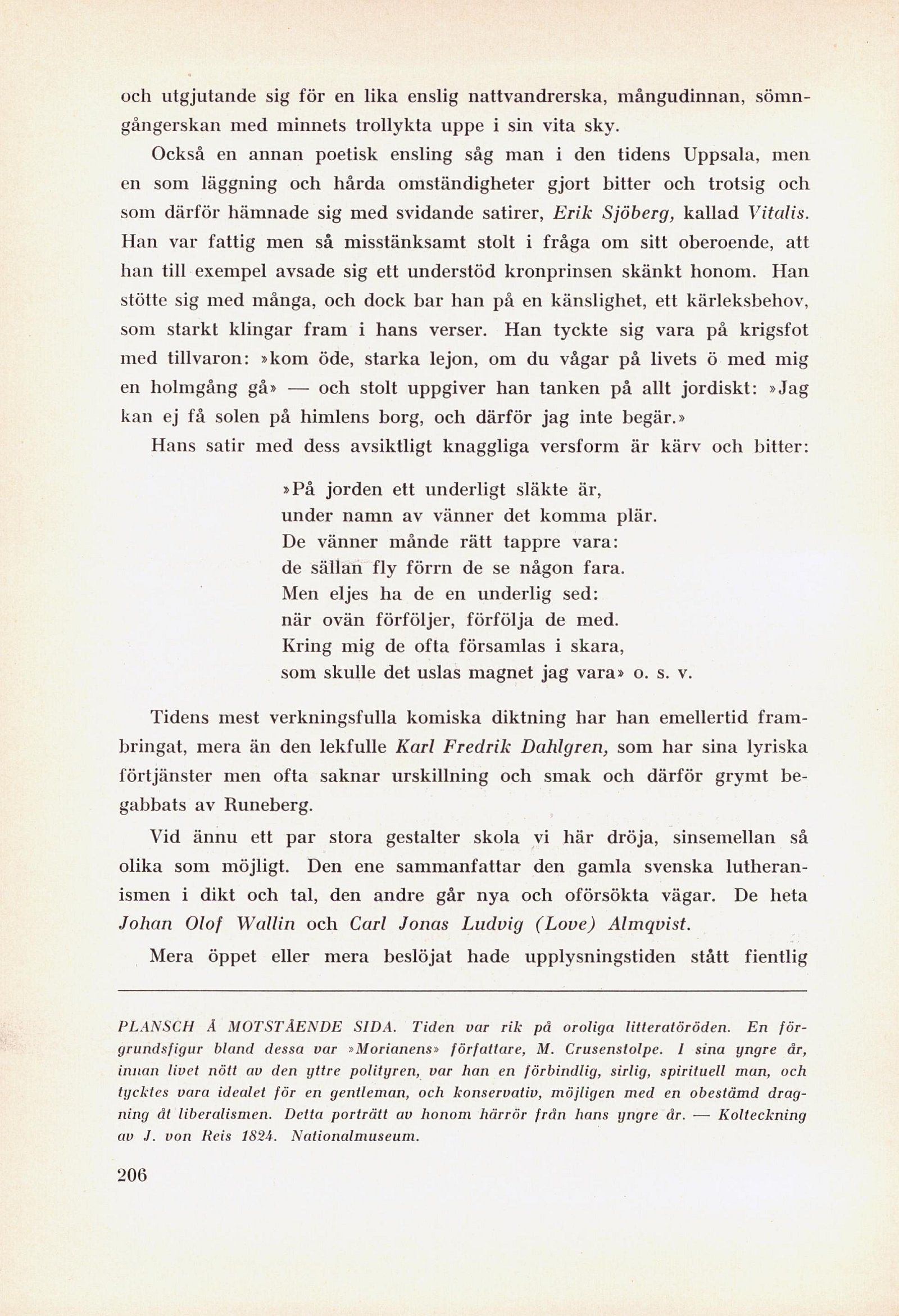 som därför hämnade sig med svidande satirer, Erik Sjöberg, kallad Vitalis.