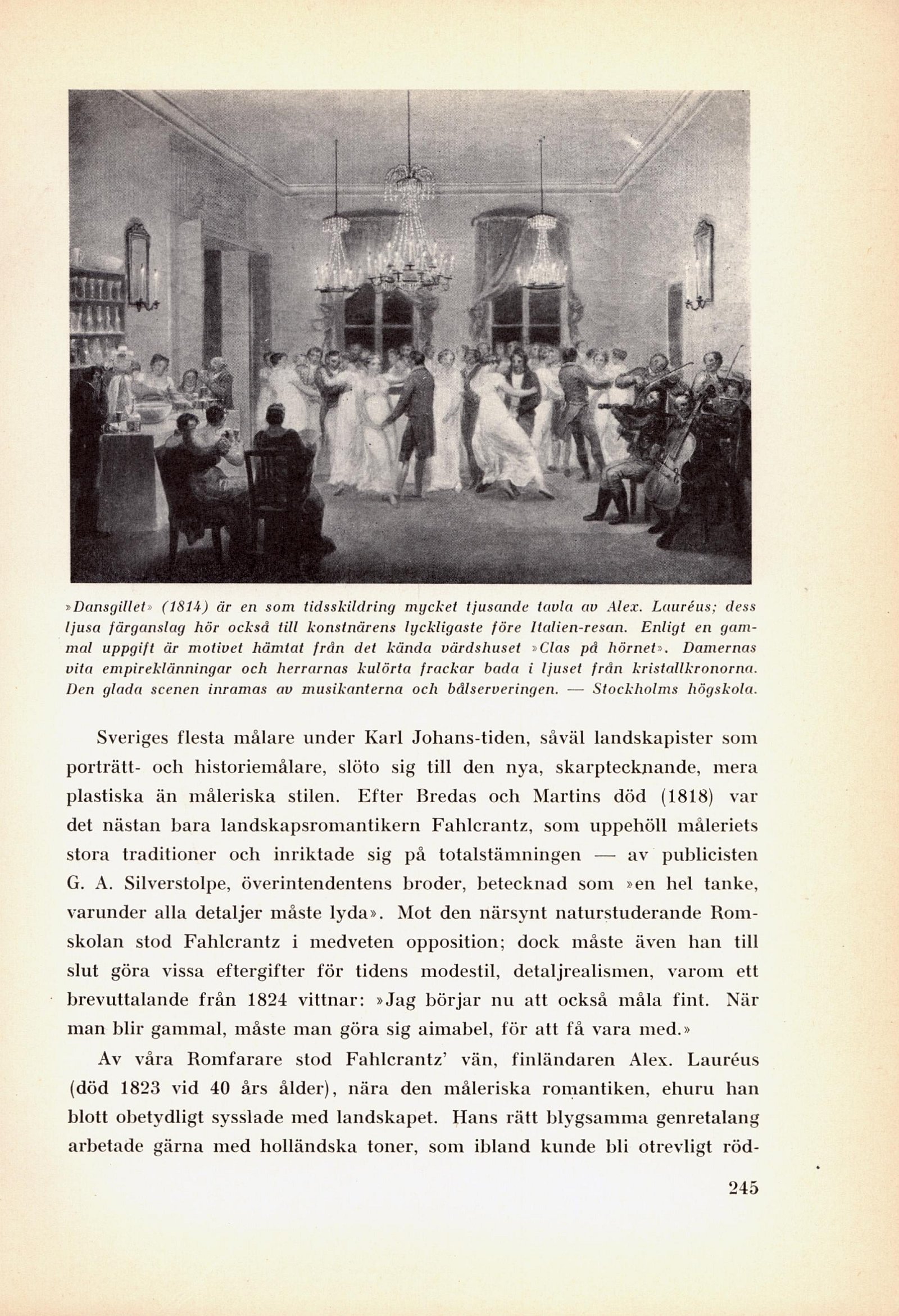»Dansgillet » (1814) år en som tidsskildring mycket tjusande tavla av Alex. Lauréus; dess