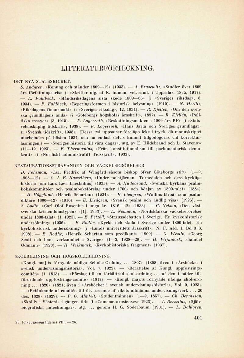 undersökning» (1936). — E. Rodhe, »Kyrka och skola i Sverige under 1800-talet. En