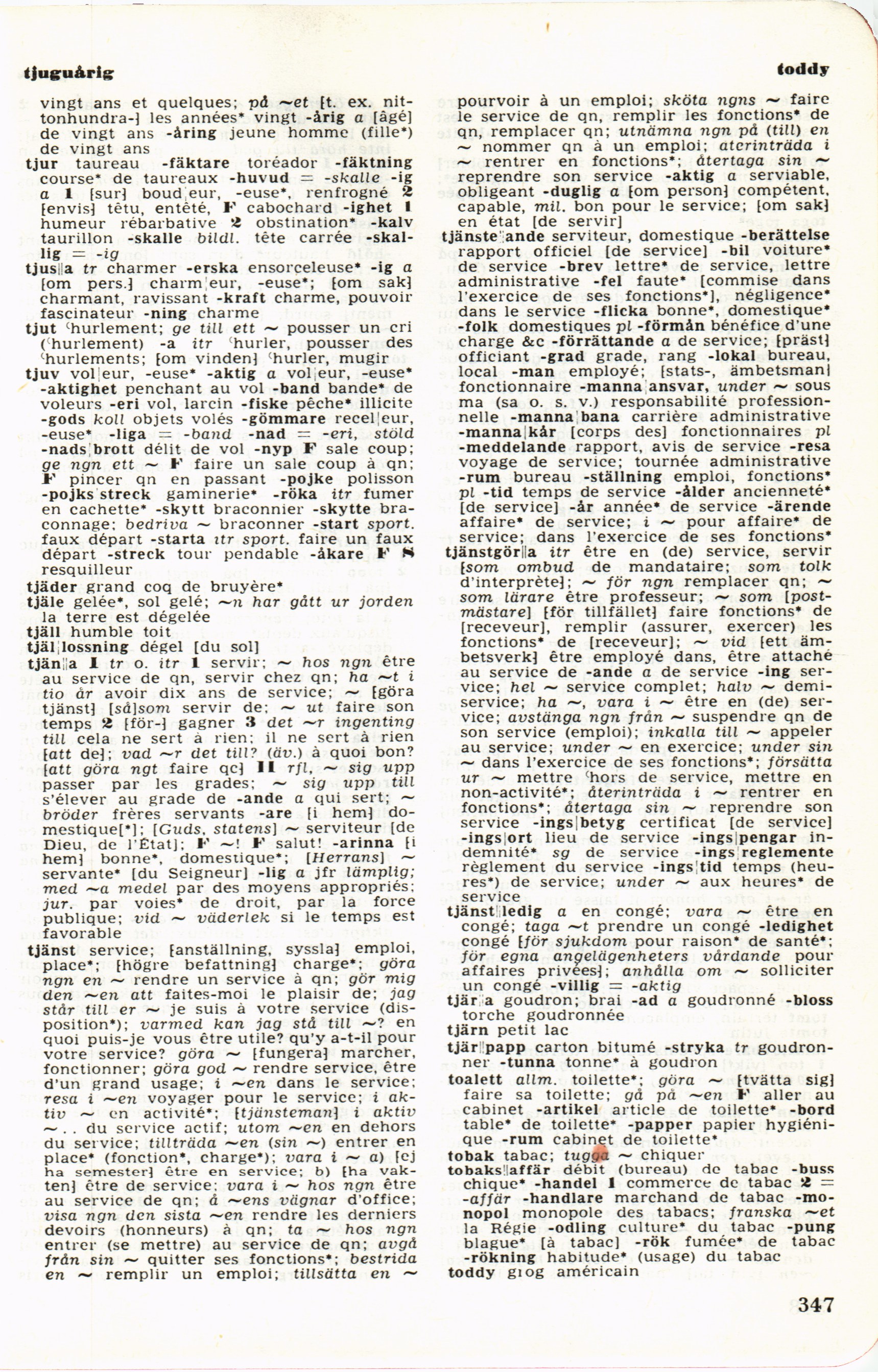 son service (emploi); inkalla till ~ appeler