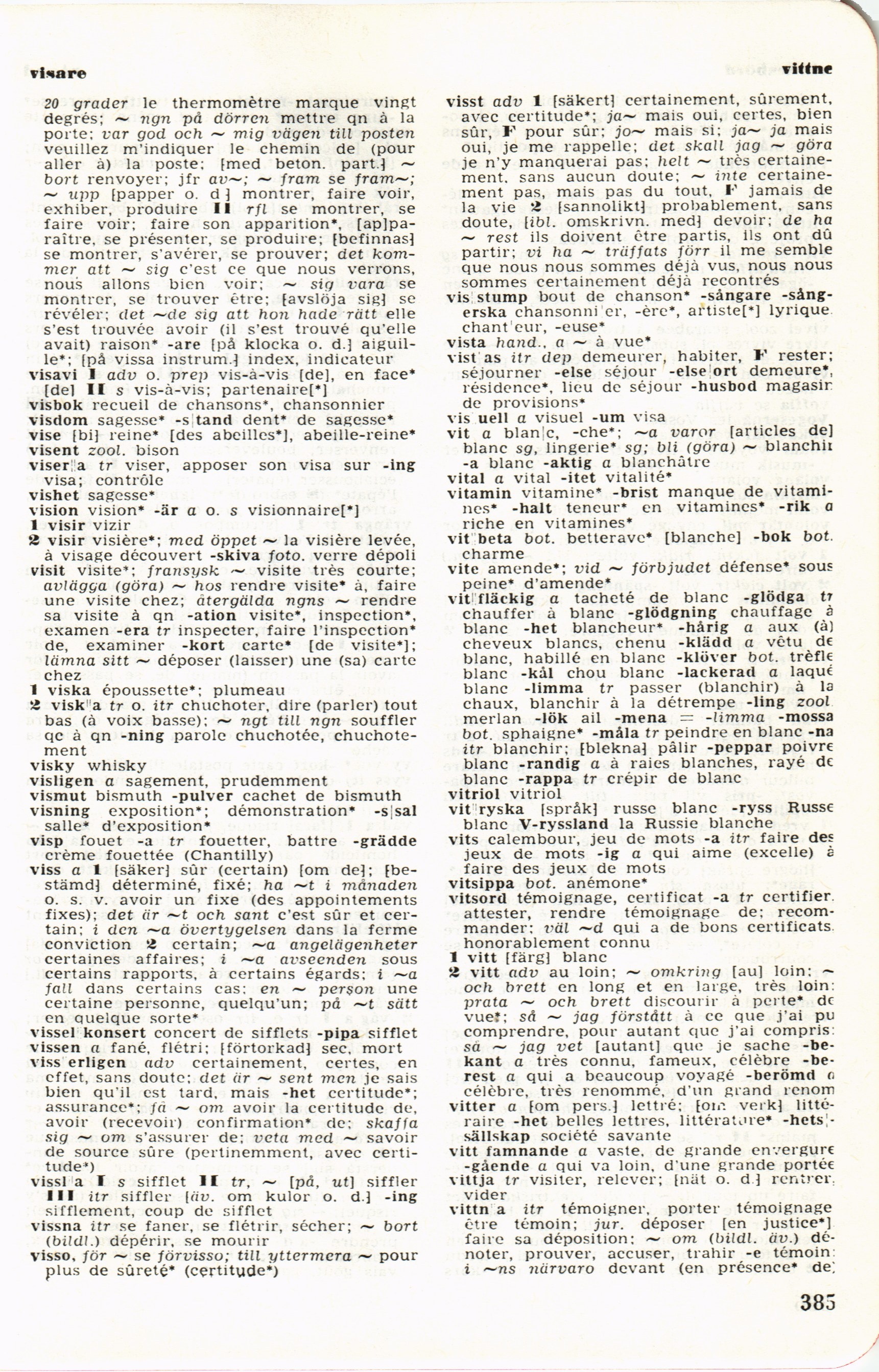 viss erligen adv certainement, certes, en