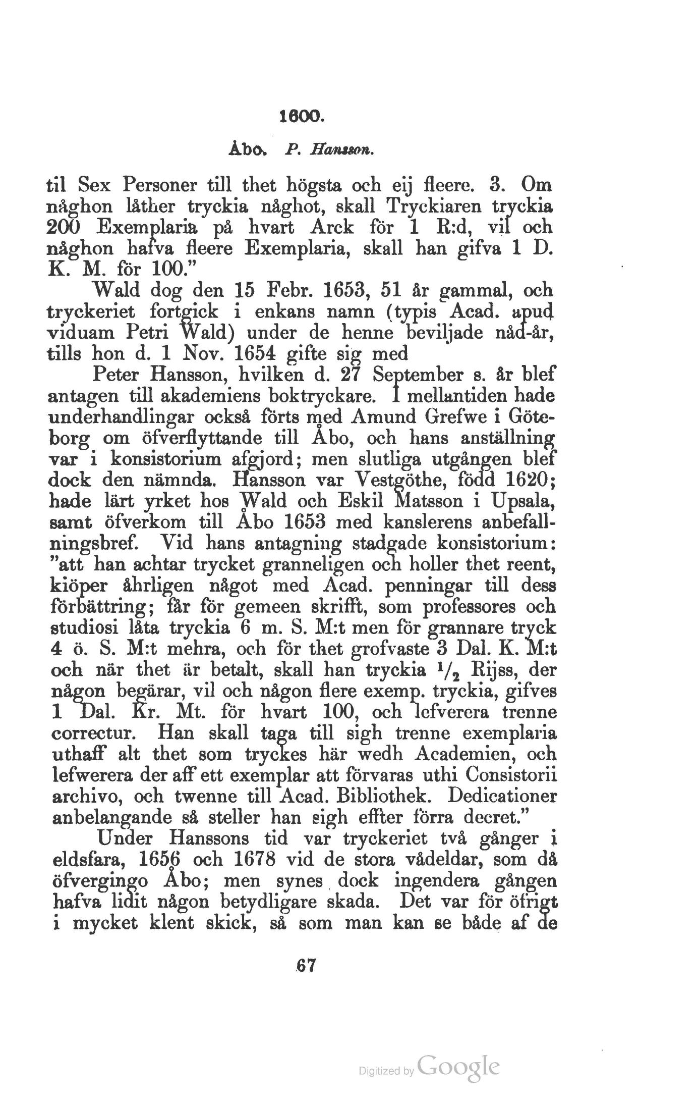 tryckeriet fortgick i enkans namn (typis Acad. apud