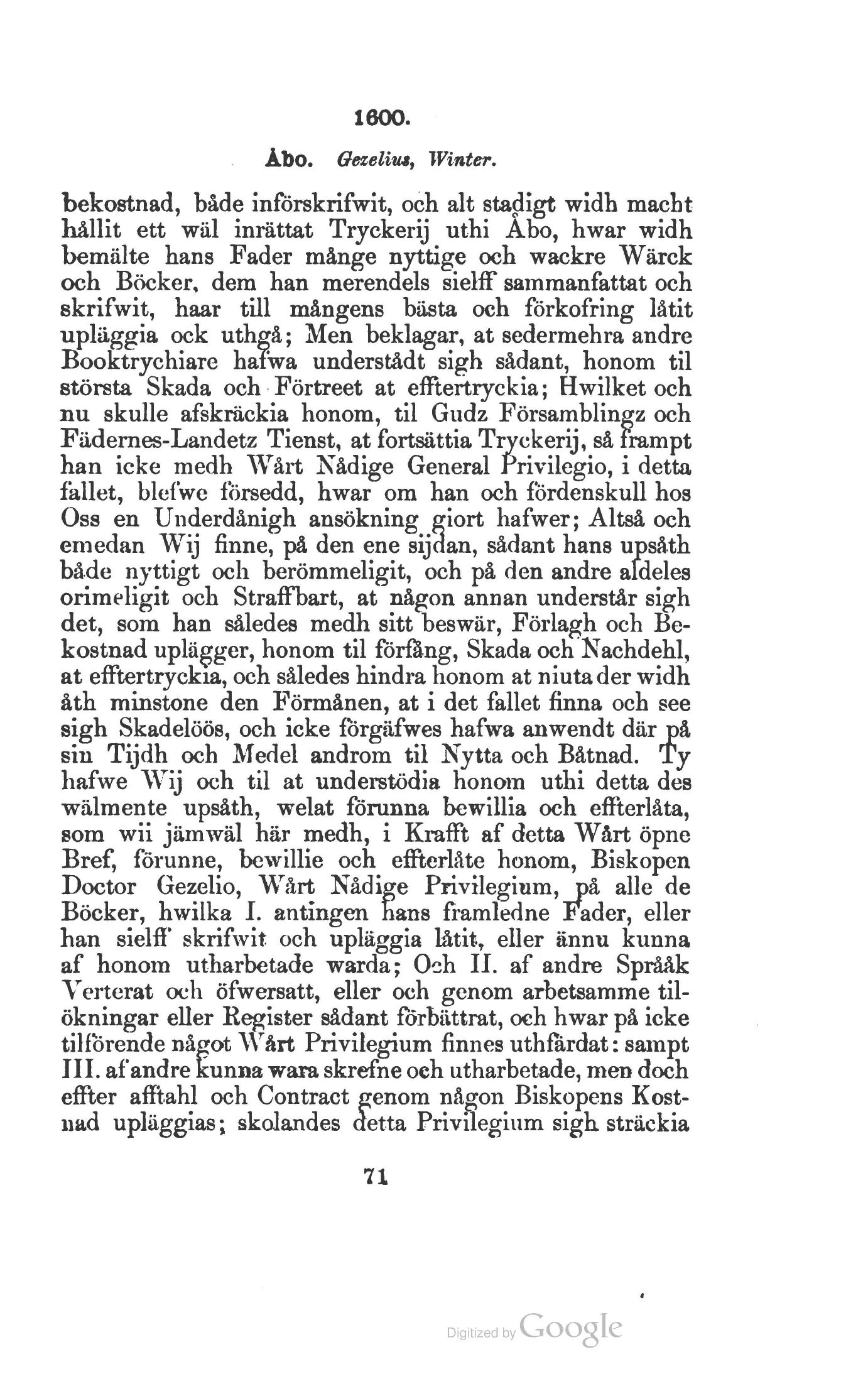 at efftertryckia, och således hindra honom at niutader widh