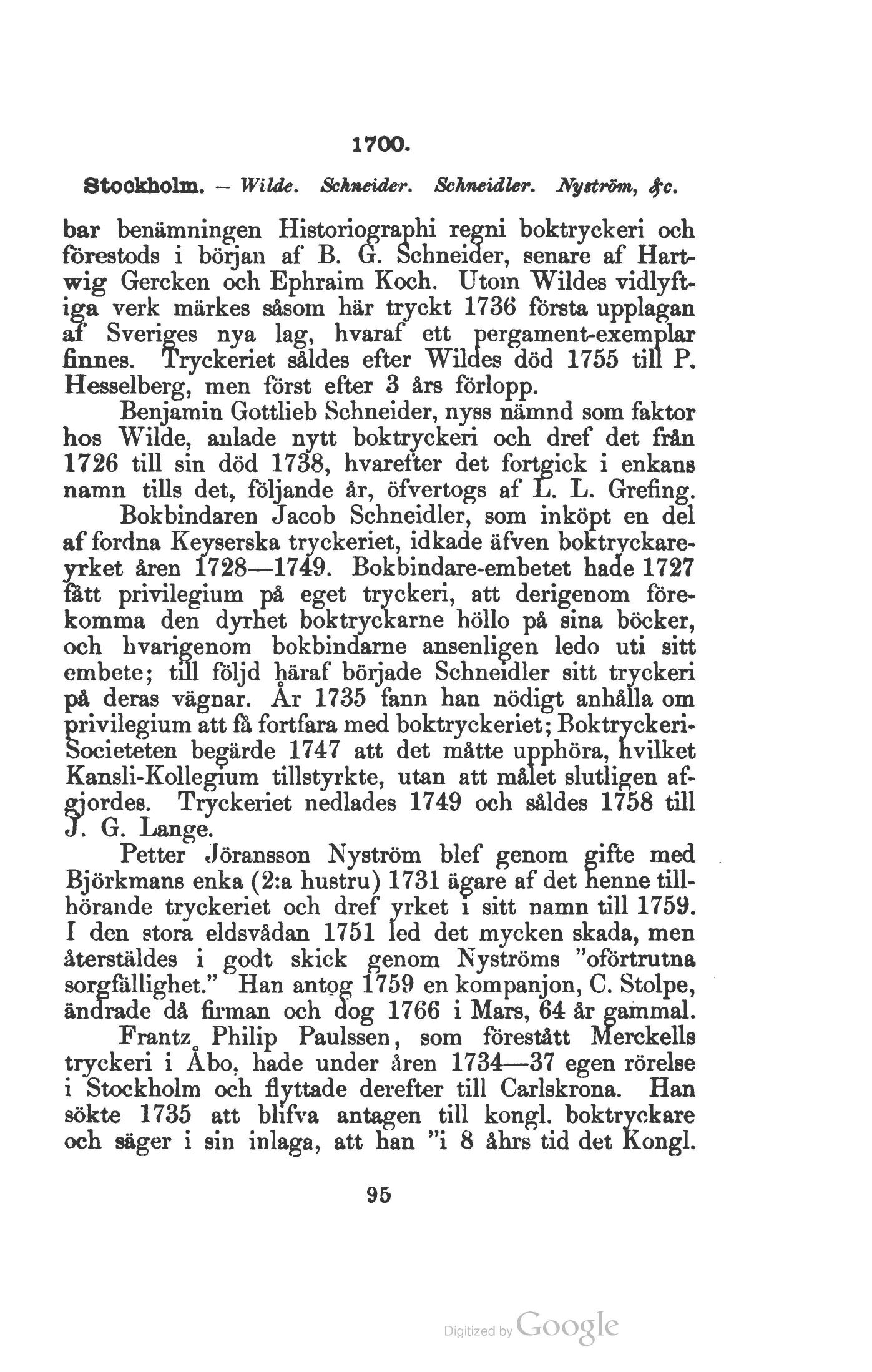 finnes. Tryckeriet såldes efter Wildes död 1755 till P.