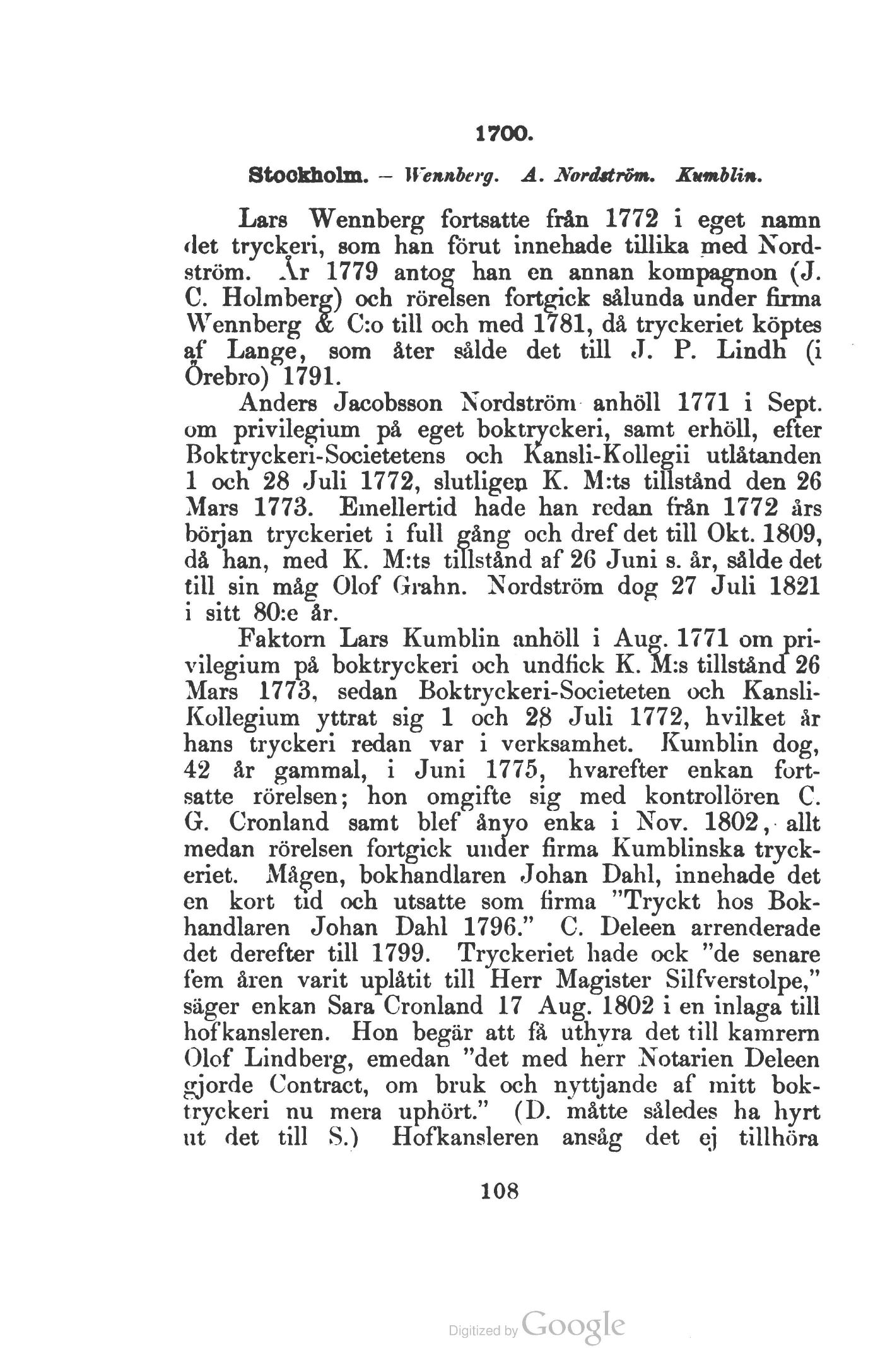 boktryckeri nu mera uphört." (D. måtte således ha hyrt