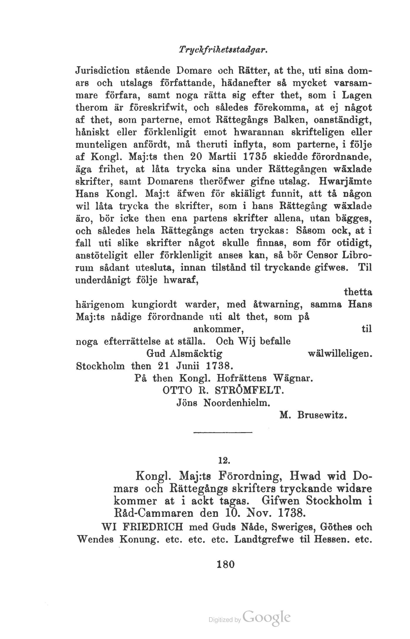 och således hela Rättegångs acten tryckas: Såsom ock, at i