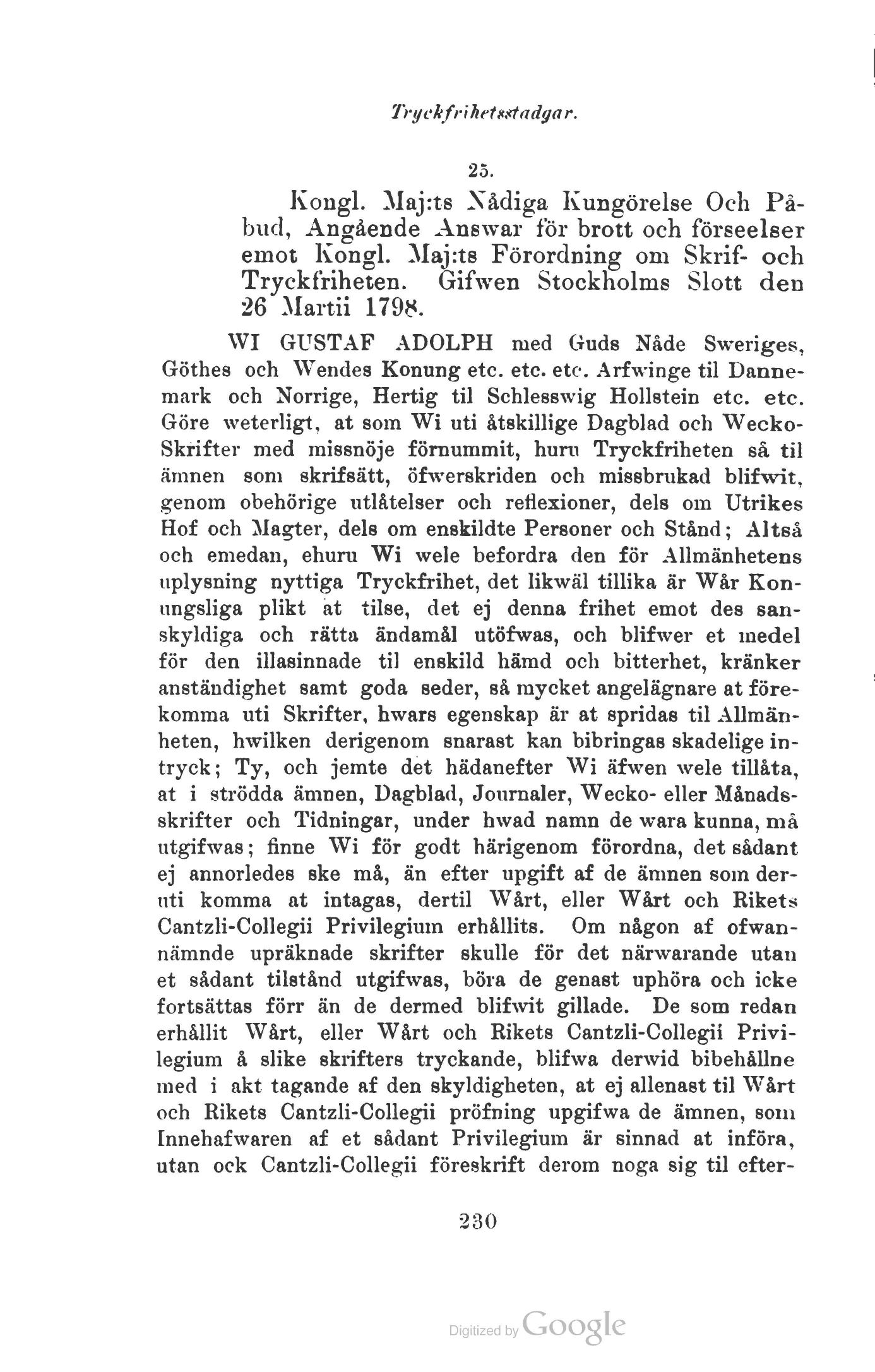 Cantzli-Collegii Privilegium erhållits. Om någon af