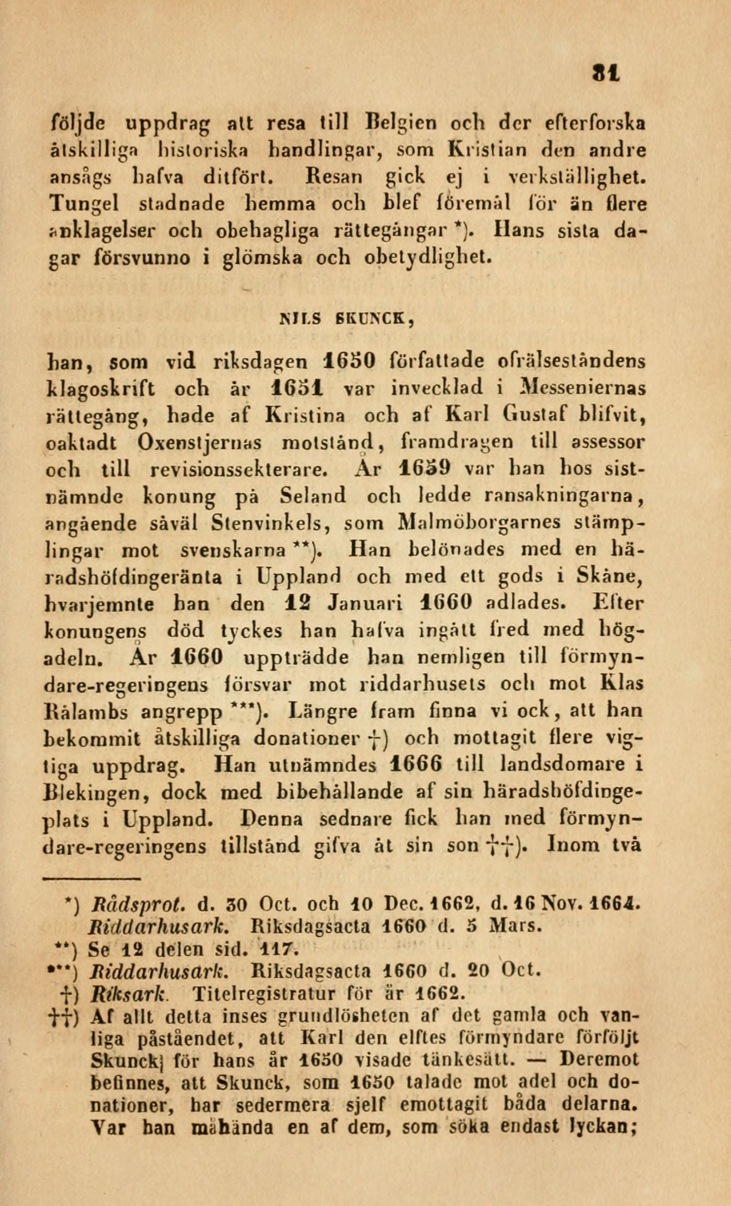 beGnnes, att Skunck, som 1650 talade mot adel och