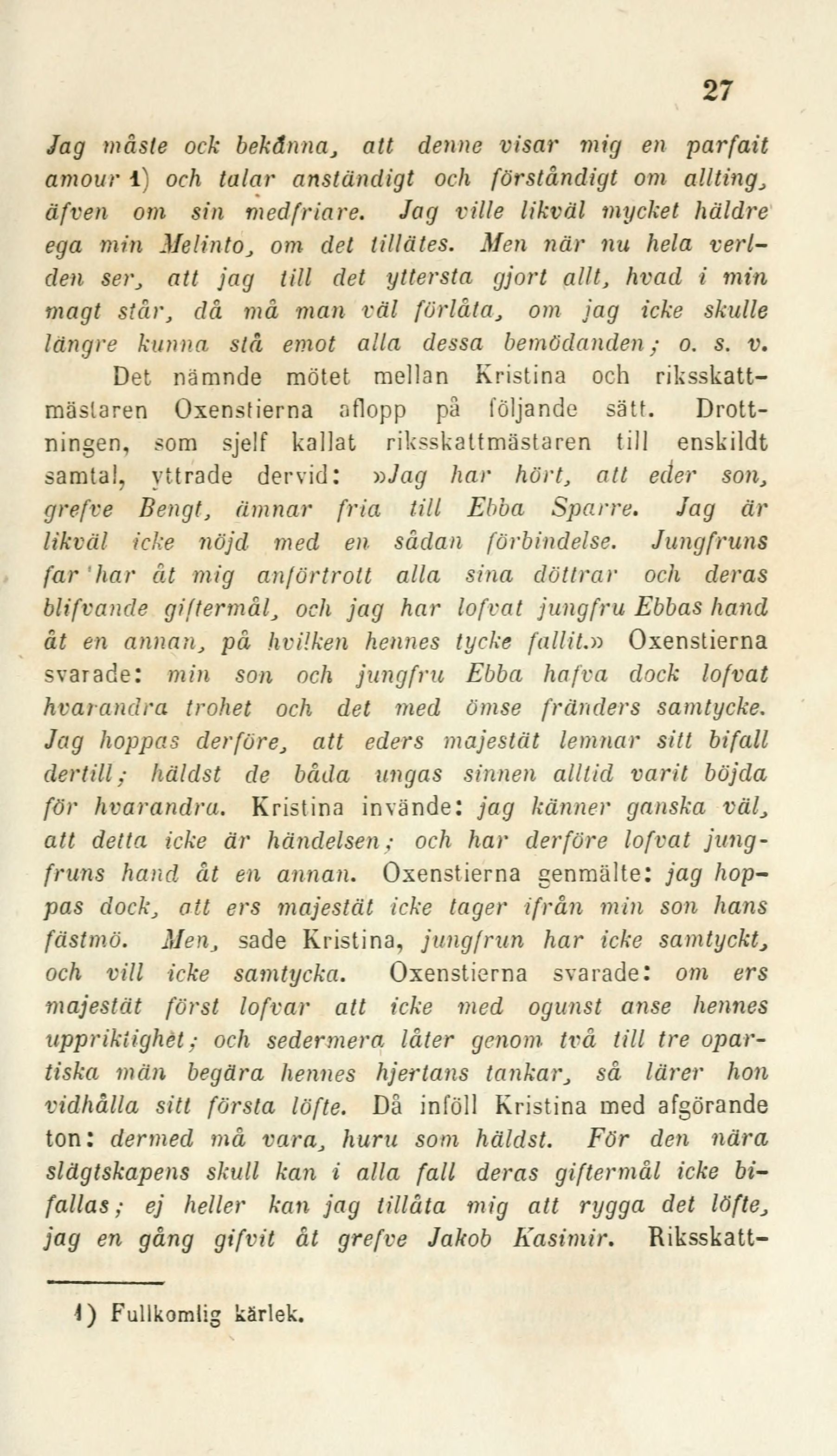 åt en annan, på hvilken hennes tycke fallit.» Oxenstierna