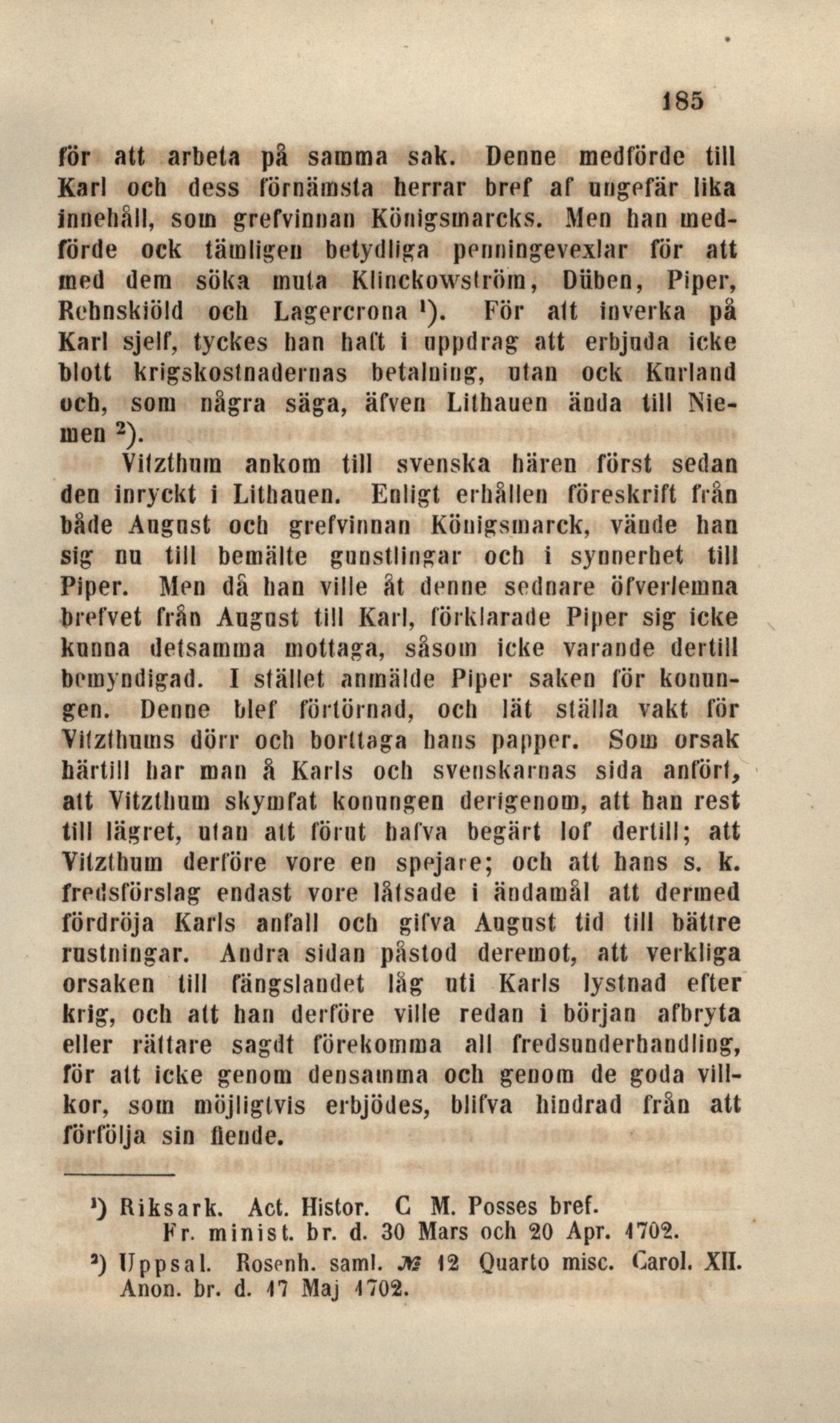 bref ve t från August till Karl, förklarade Piper sig icke