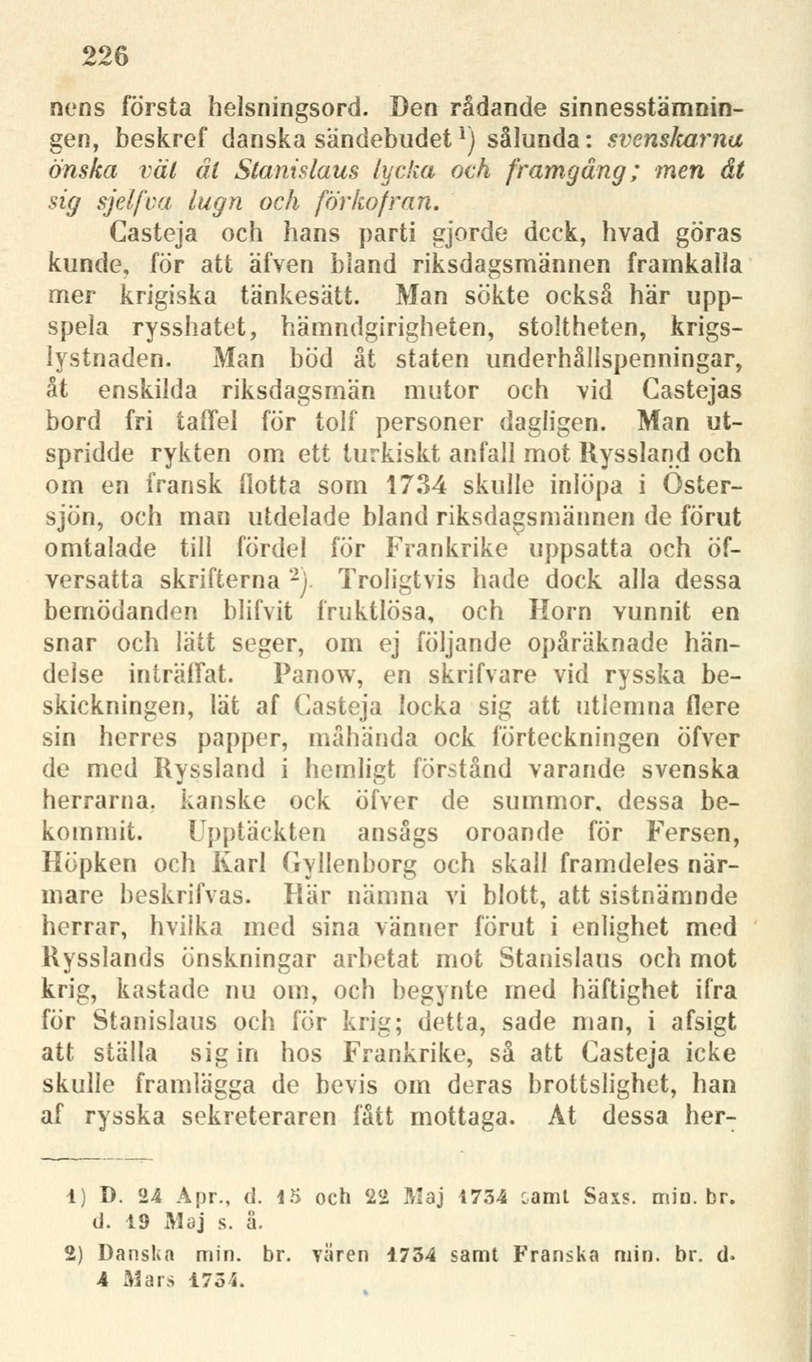 2) Danska min. br. vären 1734 samt Franska min. br. d.