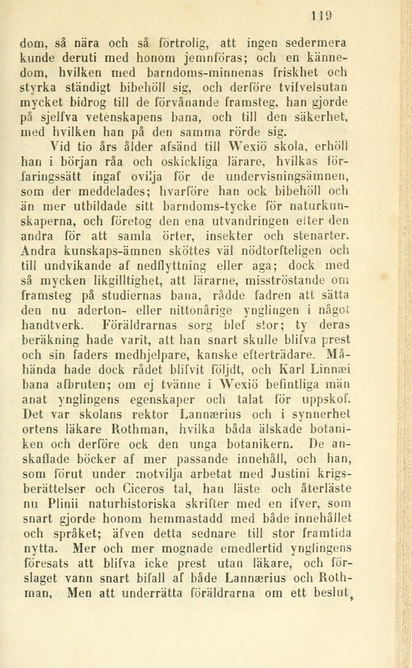 Vid tio års ålder afsänd till Wexiö skola, erhöll