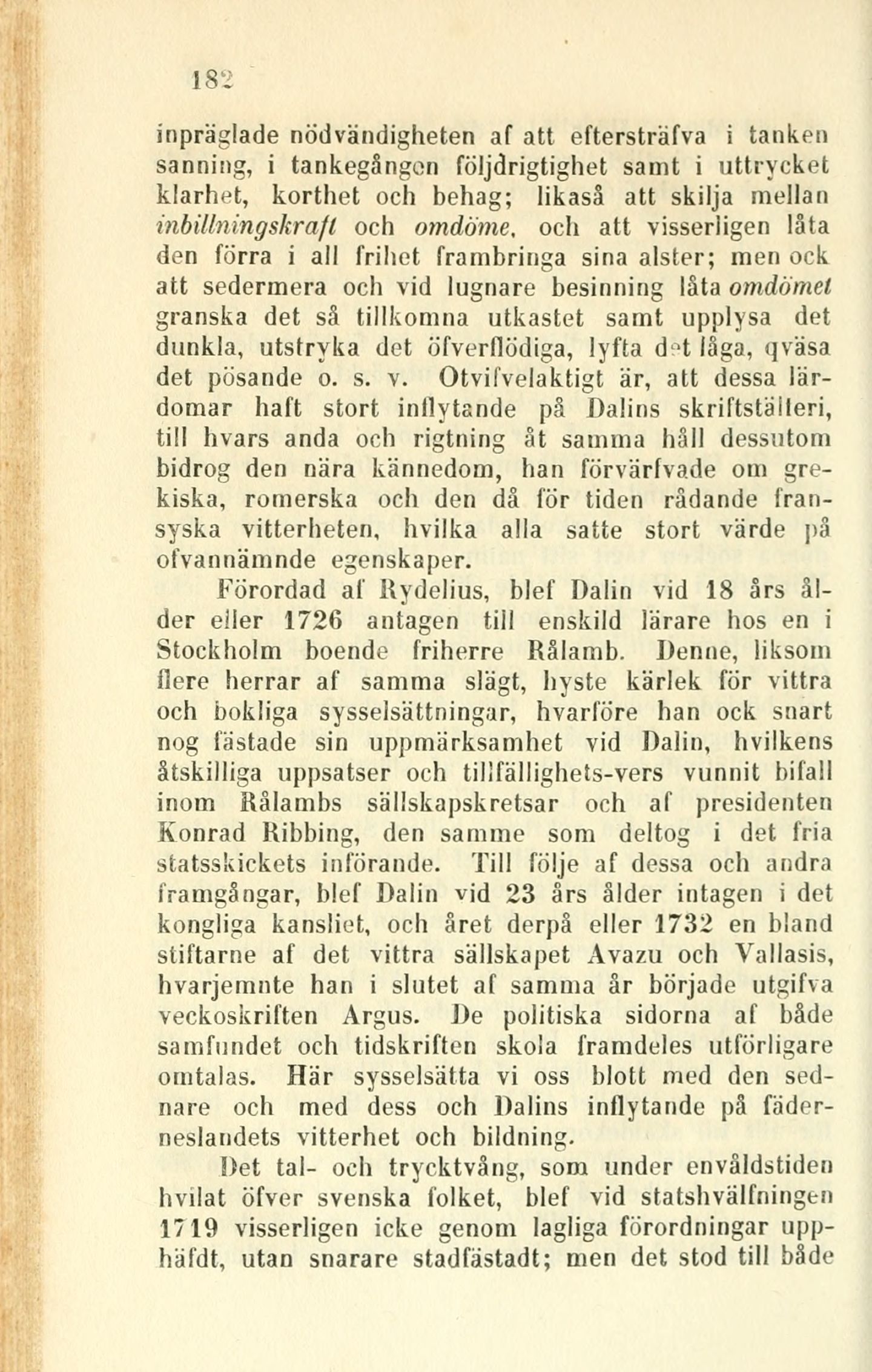 nog lastade sin uppmärksamhet vid Dalin, hvilkens
