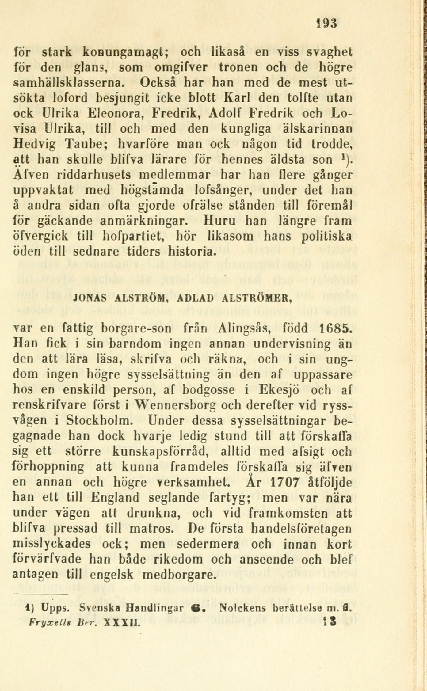 1) Upps. Svenska Handlingar 6. Nolckens berättelse m. 3.