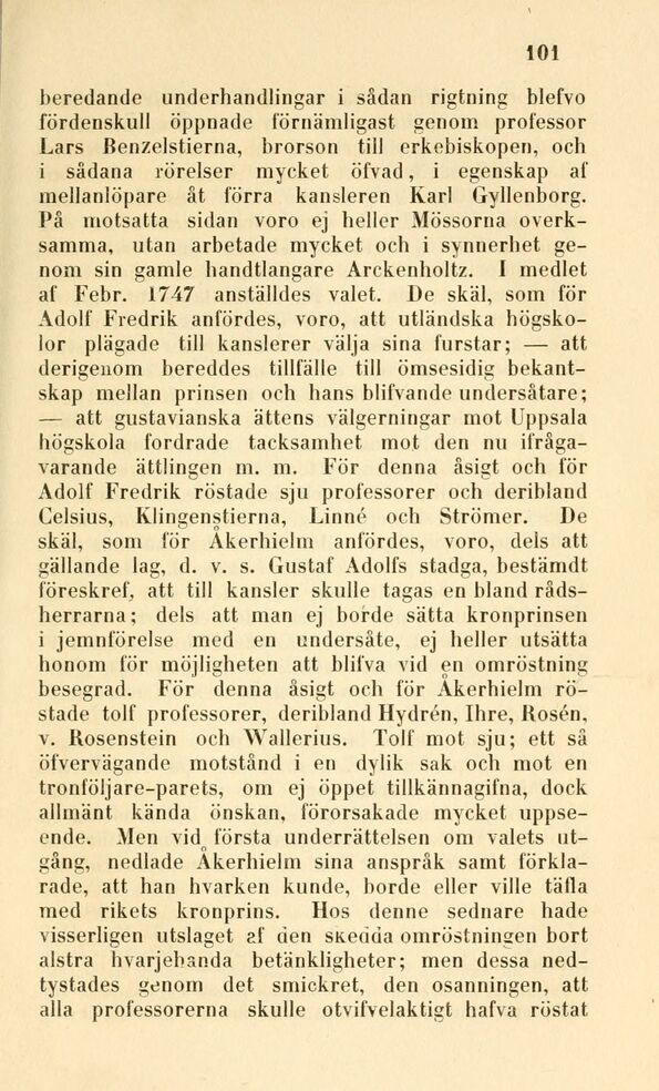 Adolf Fredrik röstade sju professorer och deribland