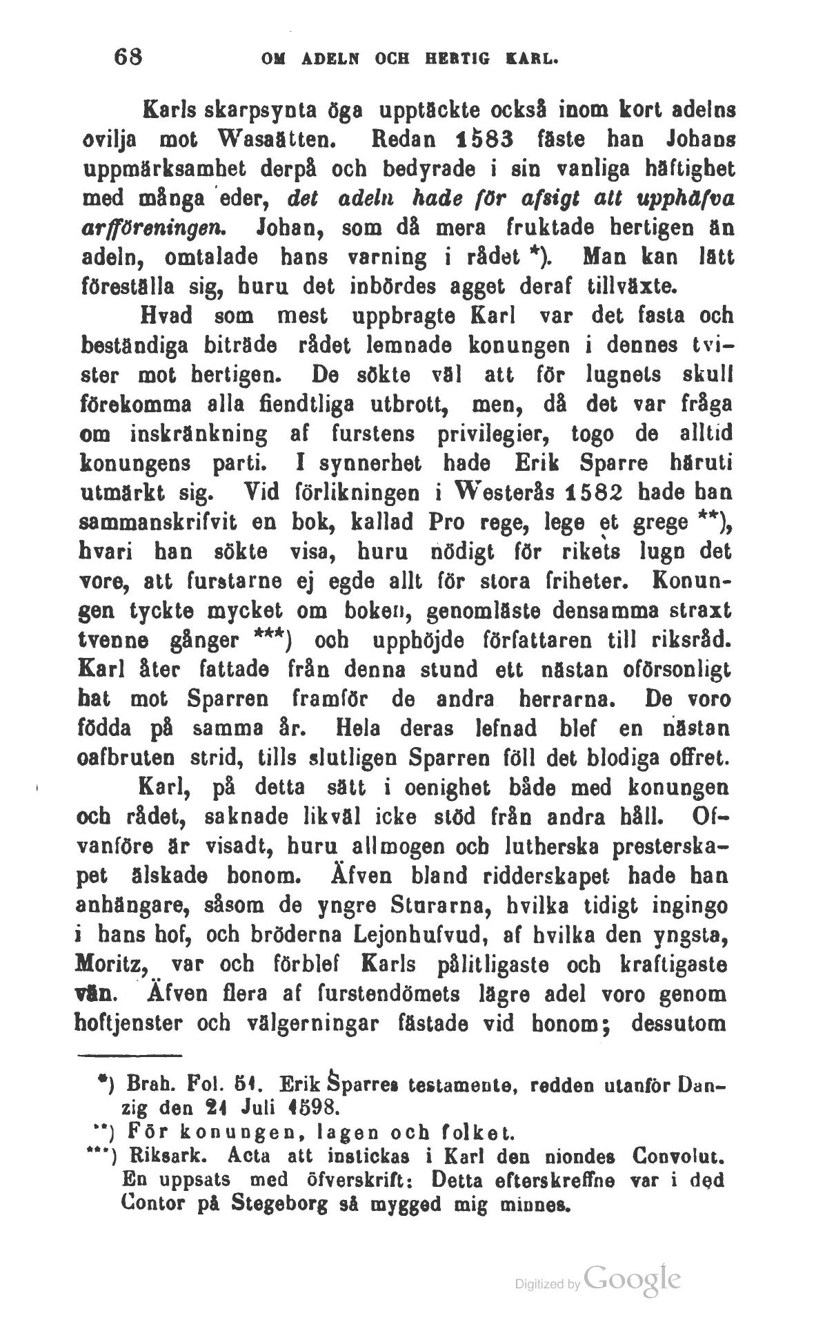 *) Brah. Fol. 64. Erik Sparres testamente, redden utanför