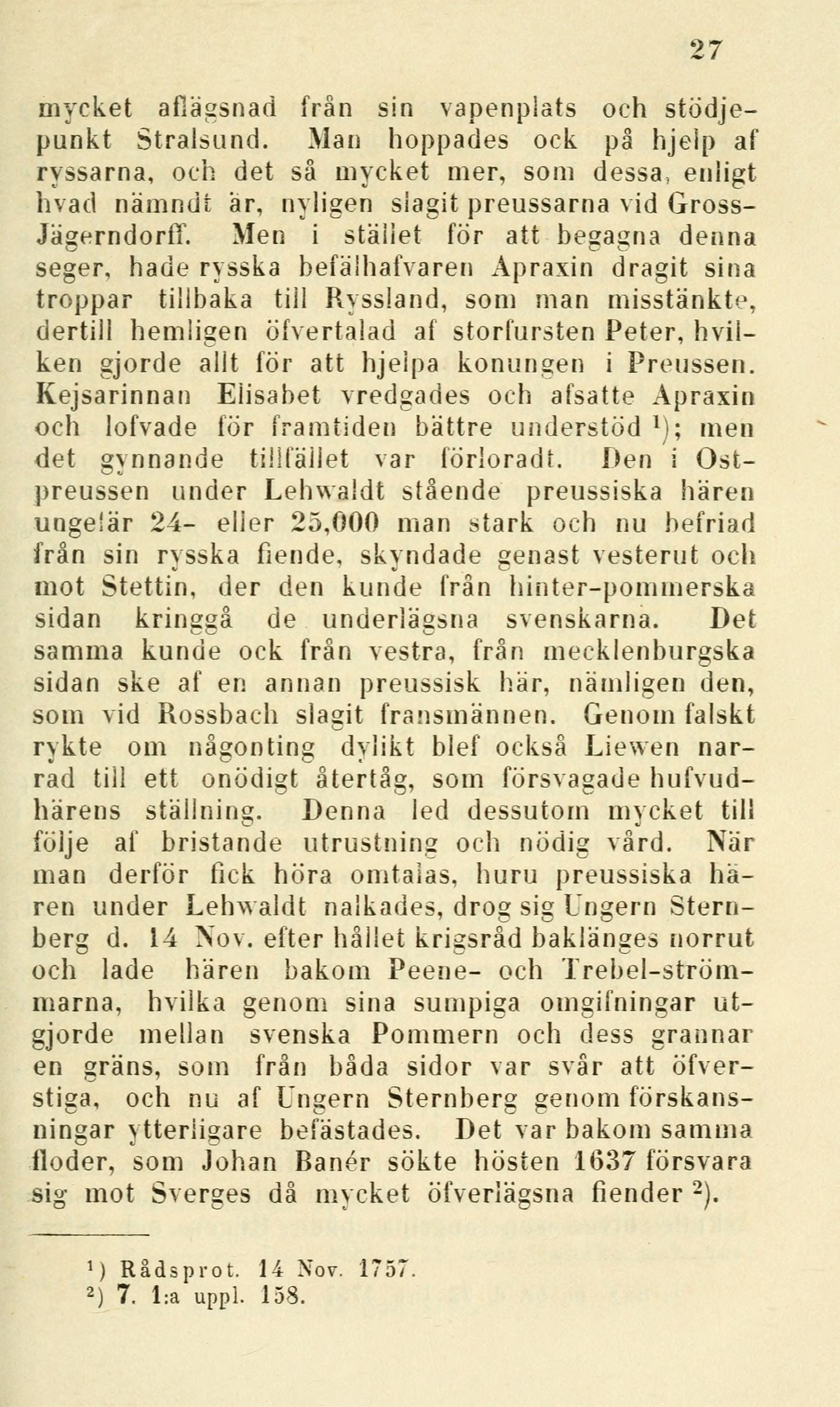 seger, hade rysska befälhafvaren Apraxin dragit sina