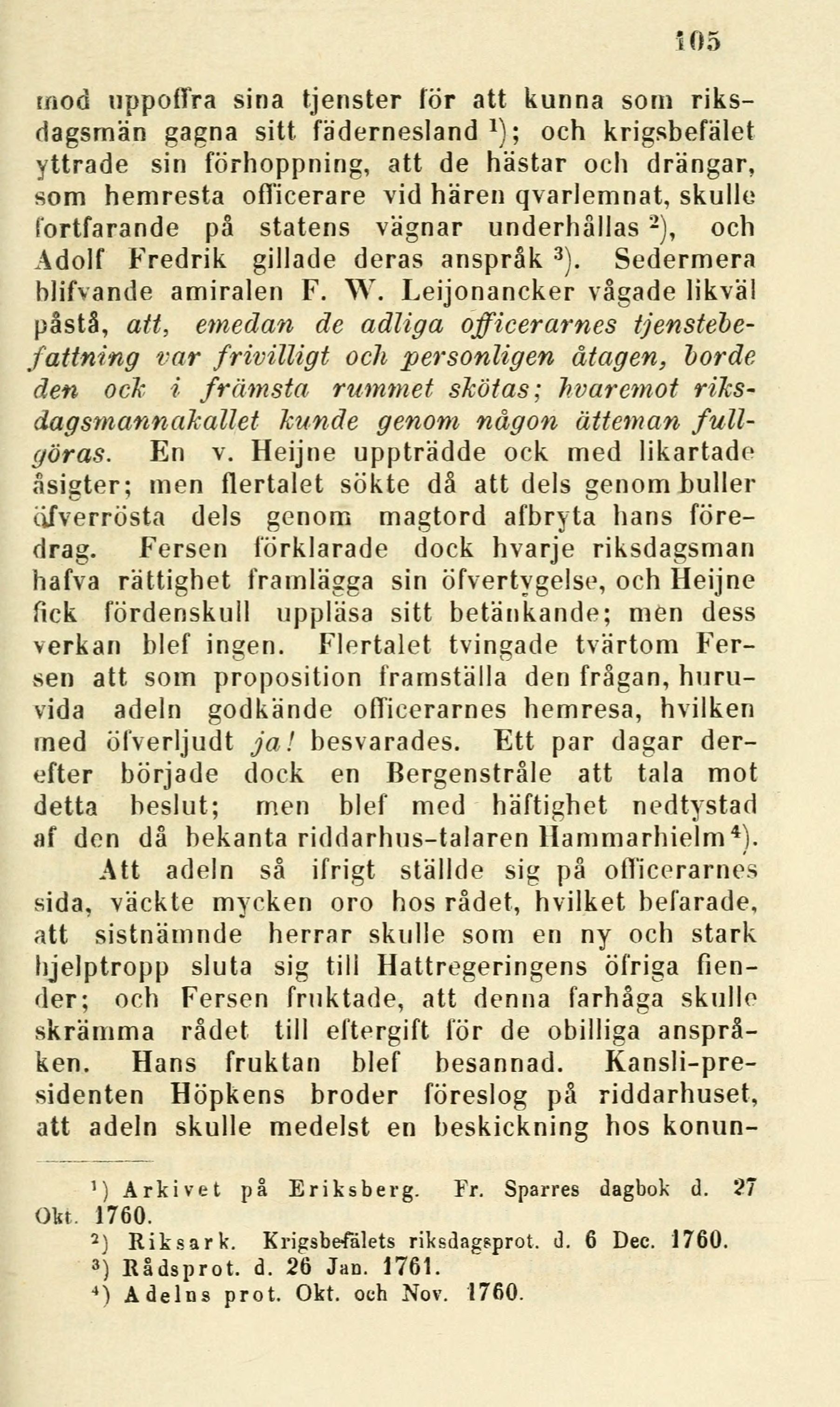 2) Riksark. Krigsbefälets riksdagsprot. d. 6 Dec. 1760.